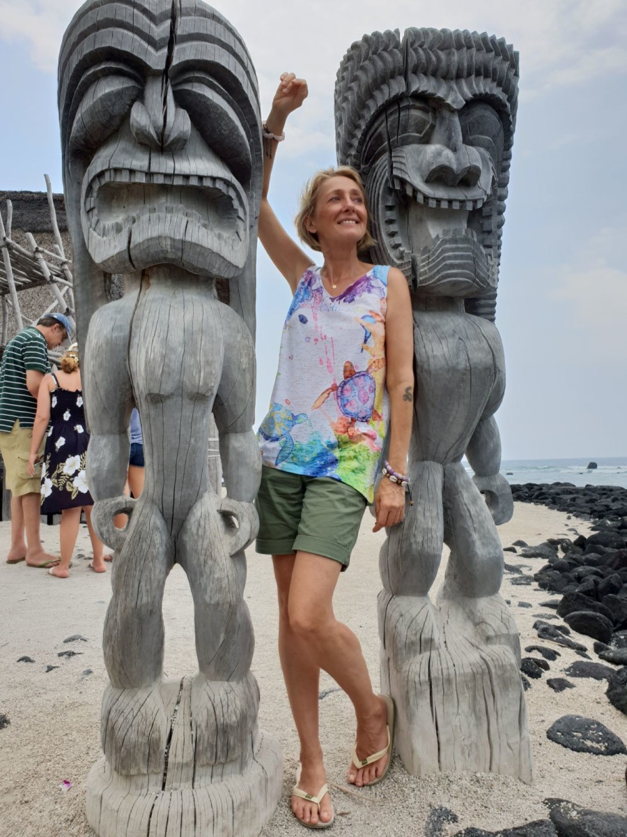 Czułam, że Hawaje to jest niezwykłe miejsce i miałam rację! Co chwilę czymś mnie zaskakiwały! Najwyższa góra na świecie Mauna Kea (ponad 10 000 m n.p.m.), czarne wulkaniczne plaże, tropikalna dżungla, wodospady, palmy kokosowe, tajemna obecność duchów, bogów i bogini w świętych miejscach (oraz poza nimi), papka z bulwy taro na śniadanie, plaża Waikiki, Honolulu, plantacje ananasów, Ocean Spokojny, delfiny, żółwie i koncerty na ukelele!!!