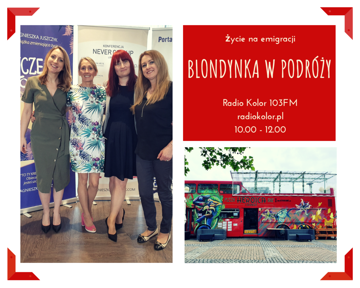 Dlaczego ludzie emigrują? Jak żyje się z daleka od kraju? Czego można się nauczyć o sobie kiedy człowiek odważy się zrobić krok w nieznane? Zapraszam dzisiaj na spotkanie z trzema Polkami, które mieszkają w Londynie od 5, 13 i 17 lat: Agnieszką Juszczyk, Agnieszką Ducher i Ireną Talarek. Życie na emigracji, Blondynka w podróży, Radio Kolor 103FM radiokolor.pl, zapraszam dzisiaj od 10.00 rano.