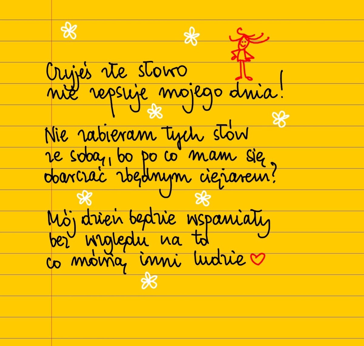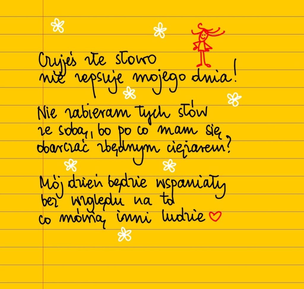 Czyjeś złe słowo nie zepsuje mojego dnia! Nie zabieram tych słów ze sobą, bo po co mam się obarczać zbędnym ciężarem. Mój dzień będzie wspaniały bez względu na to co mówią inni ludzie ❤ #żółtakartka