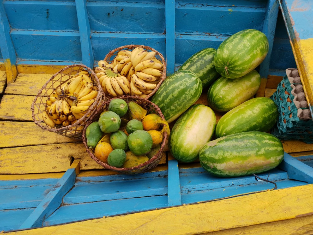 Zapas owoców przygotowany na czas wyprawy do dżungli – banany, papaje i arbuzy