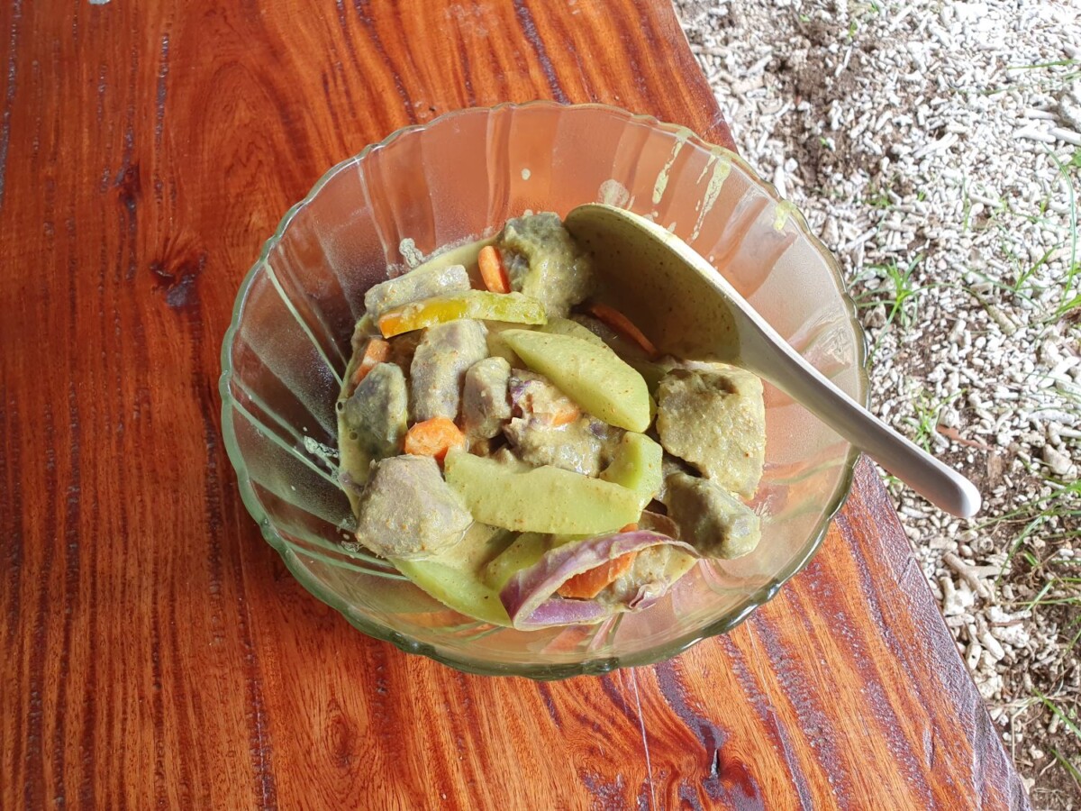 Ulubione i najbardziej typowe miejscowe jedzenie: gotowane bulwy taro z warzywami w kokosowym sosie.
