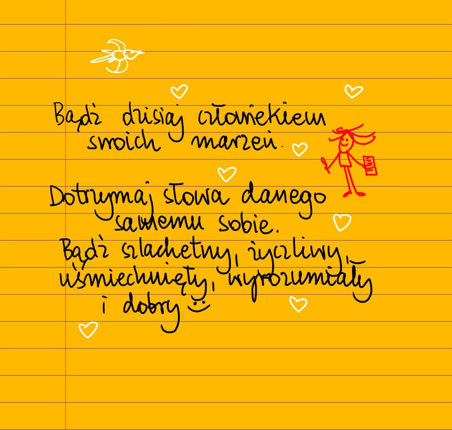Bądź dzisiaj człowiekiem swoich marzeń. Dotrzymaj słowa danego samemu sobie, bądź szlachetny, życzliwy, uśmiechnięty, wyrozumiały i dobry ❤
