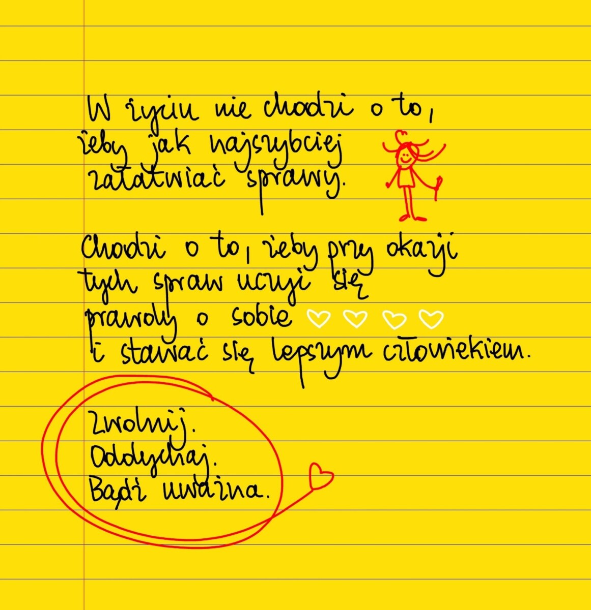 W życiu nie chodzi o to, żeby jak najszybciej załatwiać sprawy. Chodzi o to, żeby przy okazji tych spraw uczyć się prawdy o sobie i stawać się lepszym czlowiekiem. Zwolnij. Oddychaj. Bądź uważna ❤ #żółtakartka