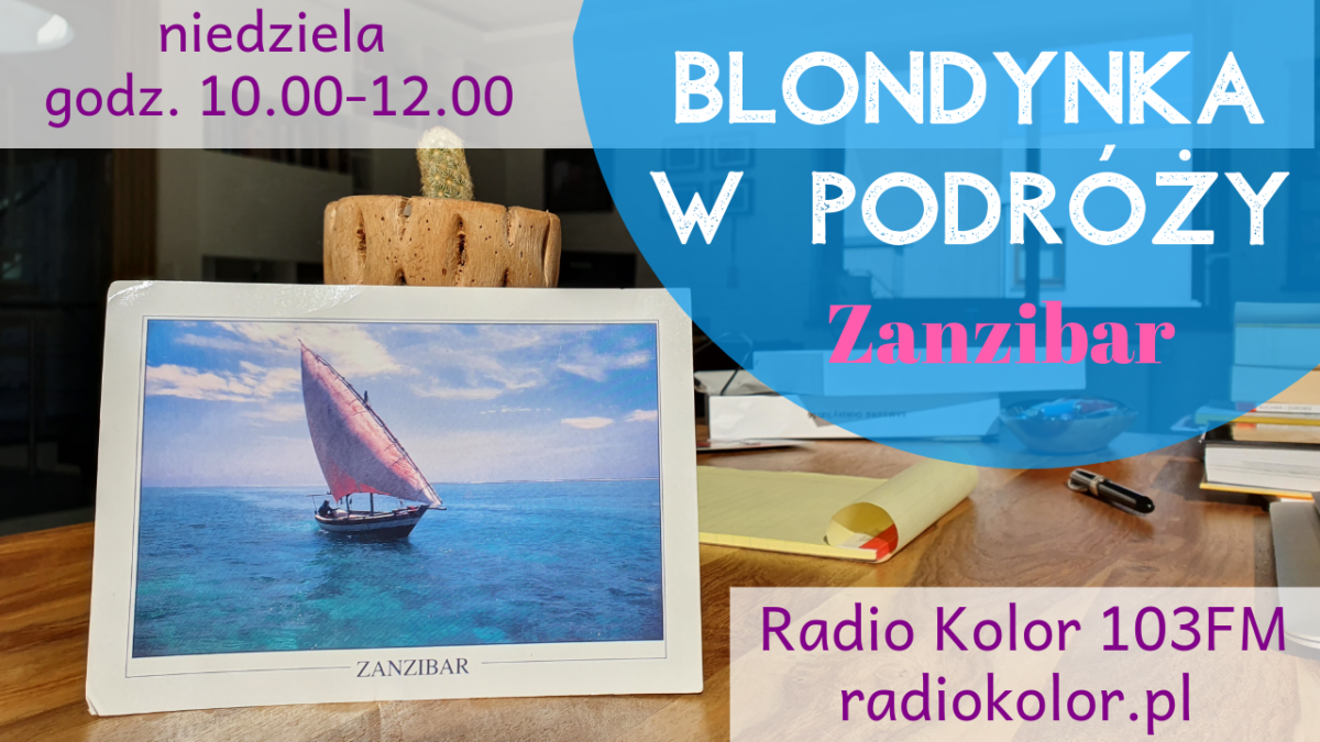 Niewielka wyspa u wybrzeży wschodniej Afryki na oceanie Indyjskim. Zapach wanilii, cynamonu i goździków, tajemnicze Kamienne Miasto z labiryntem małych uliczek tak małych, że nie zmieści się tam żaden samochód. Arabska łódź z białym trójkątnym żaglem popychana przez wiatr po falach oceanu. Bezludne wysepki z białym piaskiem. Tropikalne słońce i szalone tropikalne ulewy. Ślady dawnych przybyszów z Indii, Persji i Europy pomieszane z rdzennymi afrykańskimi wpływami. Zanzibar to bardzo niezwykła wyspa i na tę wyspę zapraszam w najbliższą niedzielę w pierwszym po wakacjach wydaniu „Blondynki w podróży”. Radio Kolor 103FM, radiokolor.pl, godz. 10.00 rano, do usłyszenia!