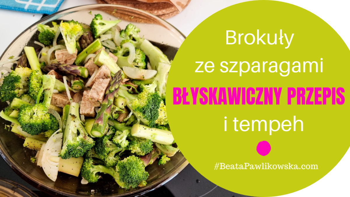 Szybkie, łatwe, pyszne, idealne na czerwcowy dzień: brokuły ze szparagami i tempeh. Składniki: pół brokułu 8-10 szparagów 5-7 plastrów tempeh* 1 cebula 2 ząbki czosnku 3 łyżki oleju koksowego pół łyżeczki soli pół łyżeczki pieprzu * Tempeh to blok ze sfermentowanej soi. Pochodzi z Indonezji, łatwo można go też kupić w Polsce, najlepiej kupić organiczne, ja takie własnie kupuję w ekologicznych sklepach internetowych.