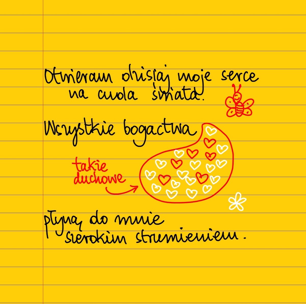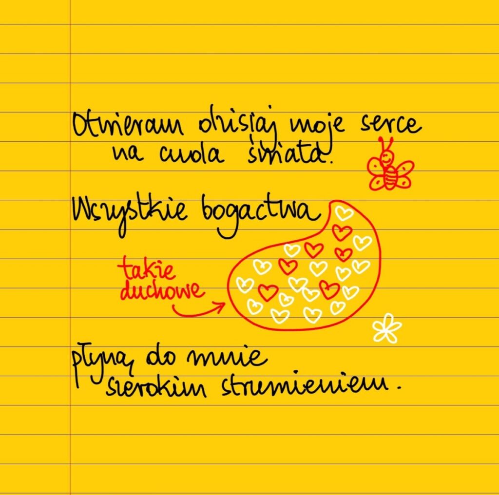 Otwieram dzisiaj moje serce na cuda świata. Wszystkie bogactwa płyną do mnie szerokim strumieniem. #żółtakartka