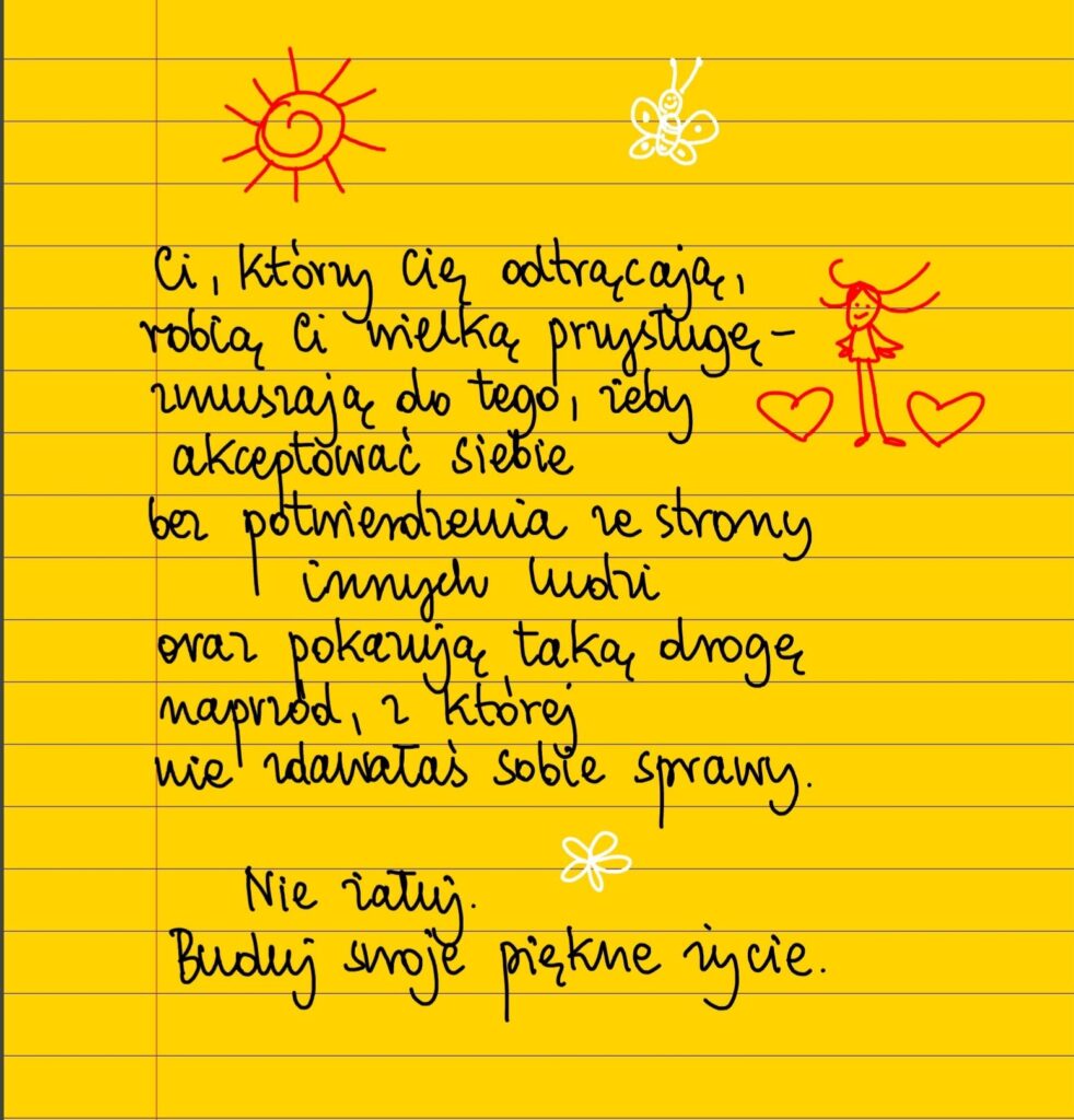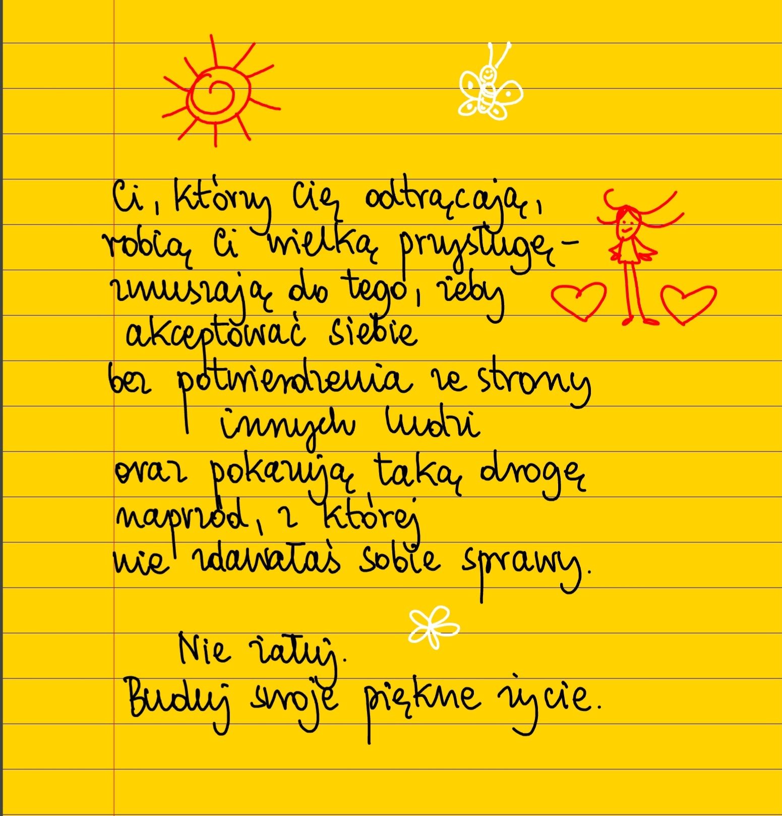 Ci, którzy Cię odtrącają, robią Ci wielką przysługę – zmuszają do tego, żeby akceptować siebie bez potwierdzenia ze strony innych ludzi oraz pokazują taka drogę naprzód, z której nie zdawałeś sobie sprawy. Nie żałuj. Buduj swoje piękne życie ❤ #żółtakartka