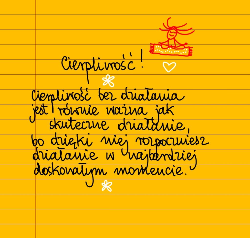 Cierpliwość! ❤ Cierpliwość bez działania jest równie ważna jak skuteczne działanie, bo dzięki cierpliwości rozpoczniesz działanie w najbardziej doskonałym momencie. #żółtakartka