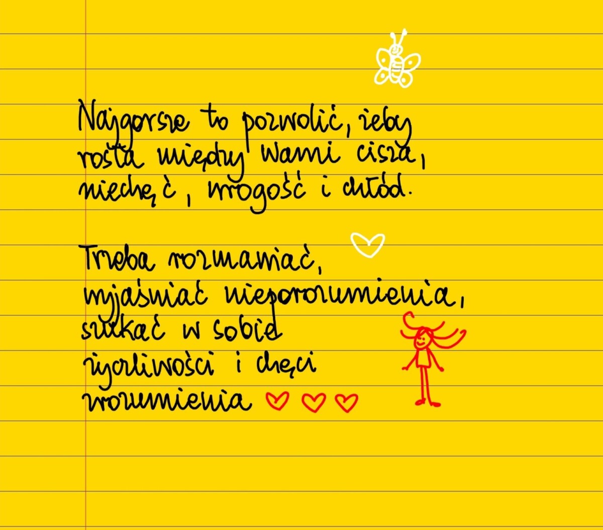 Najgorsze co możesz zrobić to pozwolić, żeby rosła między wami cisza, wrogość, niechęć i chłód. Trzeba rozmawiać,  wyjaśniać nieporozumienia, szukać w sobie życzliwości i chęci zrozumienia drugiego człowieka. #żółtakartka