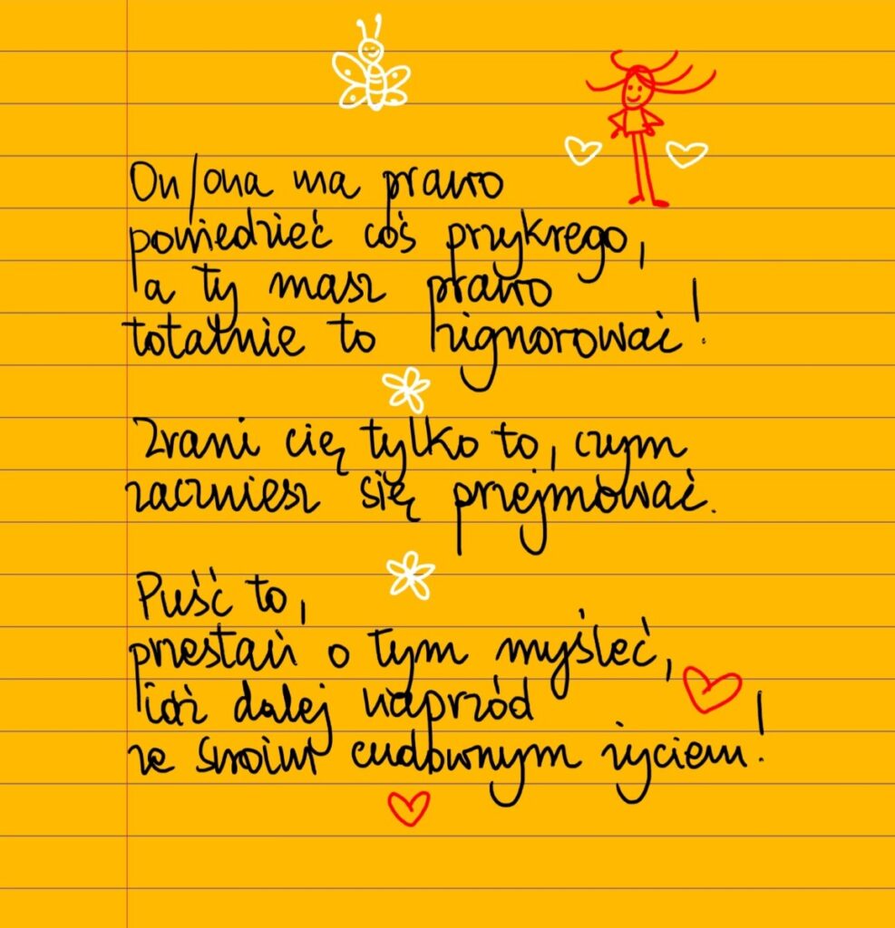 On/ona ma prawo powiedzieć coś przykrego, a ty masz prawo totalnie to zignorować. Zrani cię tylko to, czym zaczniesz się przejmować. Puść to, nie myśl o tym, idź naprzód ze swoim cudownym życiem. #żółtakartka