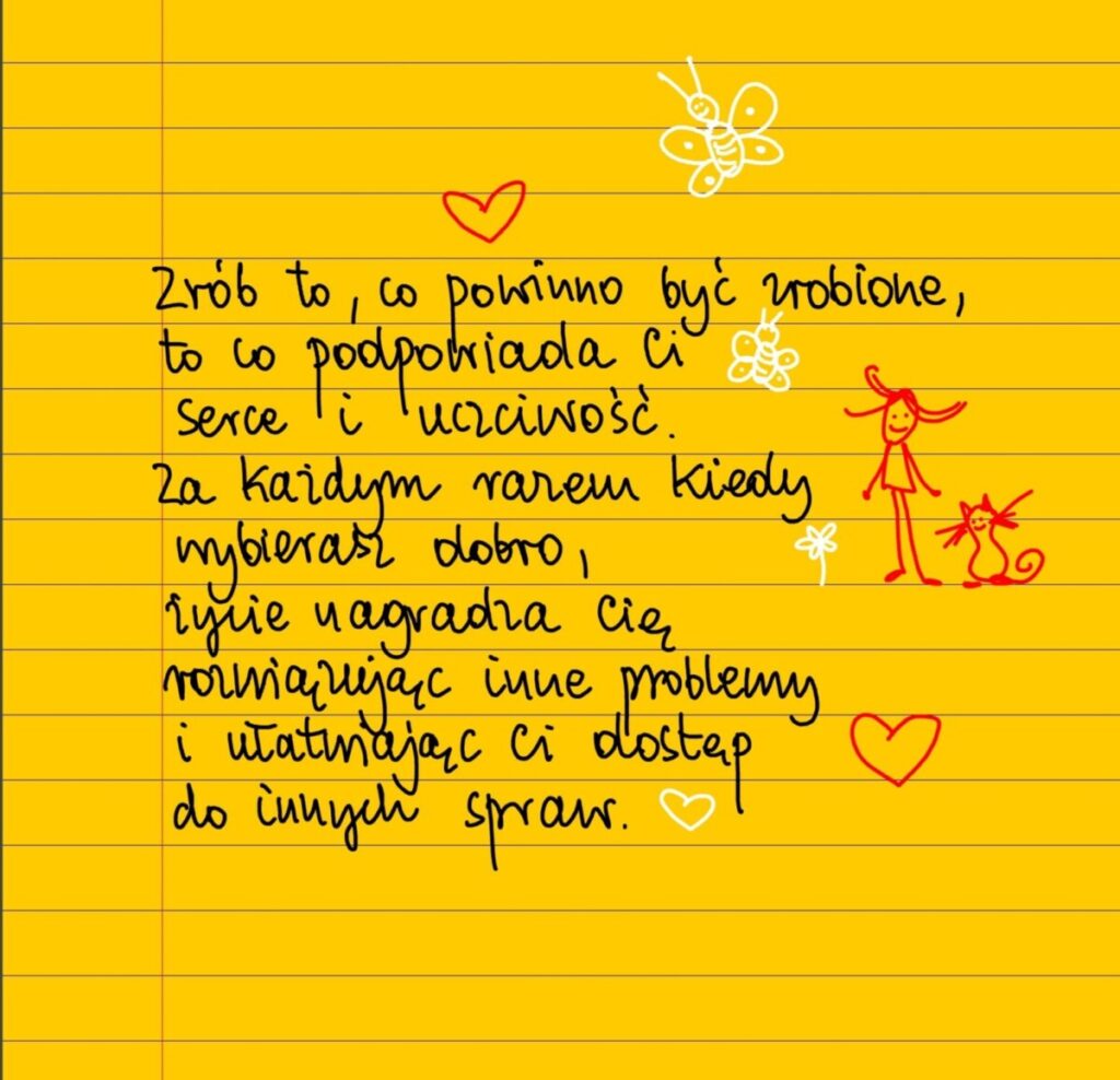 Zrób to, co powinno być zrobione, bo tak podpowiada ci serce i uczciwość. Za każdym razem kiedy wybierasz dobro, życie nagradza cię rozwiązując inne problemy albo ułatwiając dostęp do innych spraw. #żółtakartka