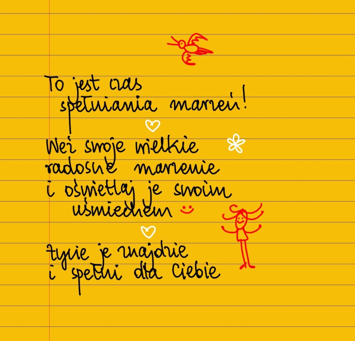 To jest czas spełniania marzeń! Weź swoje wielkie radosne marzenie i oświetlaj je swoim uśmiechem. Życie je znajdzie i spełni dla ciebie 😊 #żółtakartka