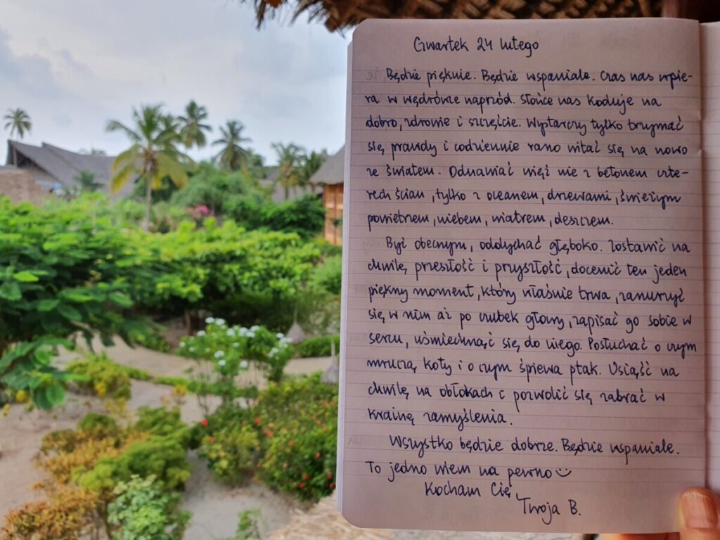 Będzie pięknie. Będzie wspaniale. Czas nas wspiera w wędrówce naprzód. Słońce nas koduje na dobro, zdrowie i szczęście. Wystarczy tylko trzymać się prawdy i codziennie rano witać się na nowo ze światem. Odnawiać więź nie z betonem czterech ścian, tylko z oceanem, drzewami, świeżym powietrzem, niebem, wiatrem, deszczem.