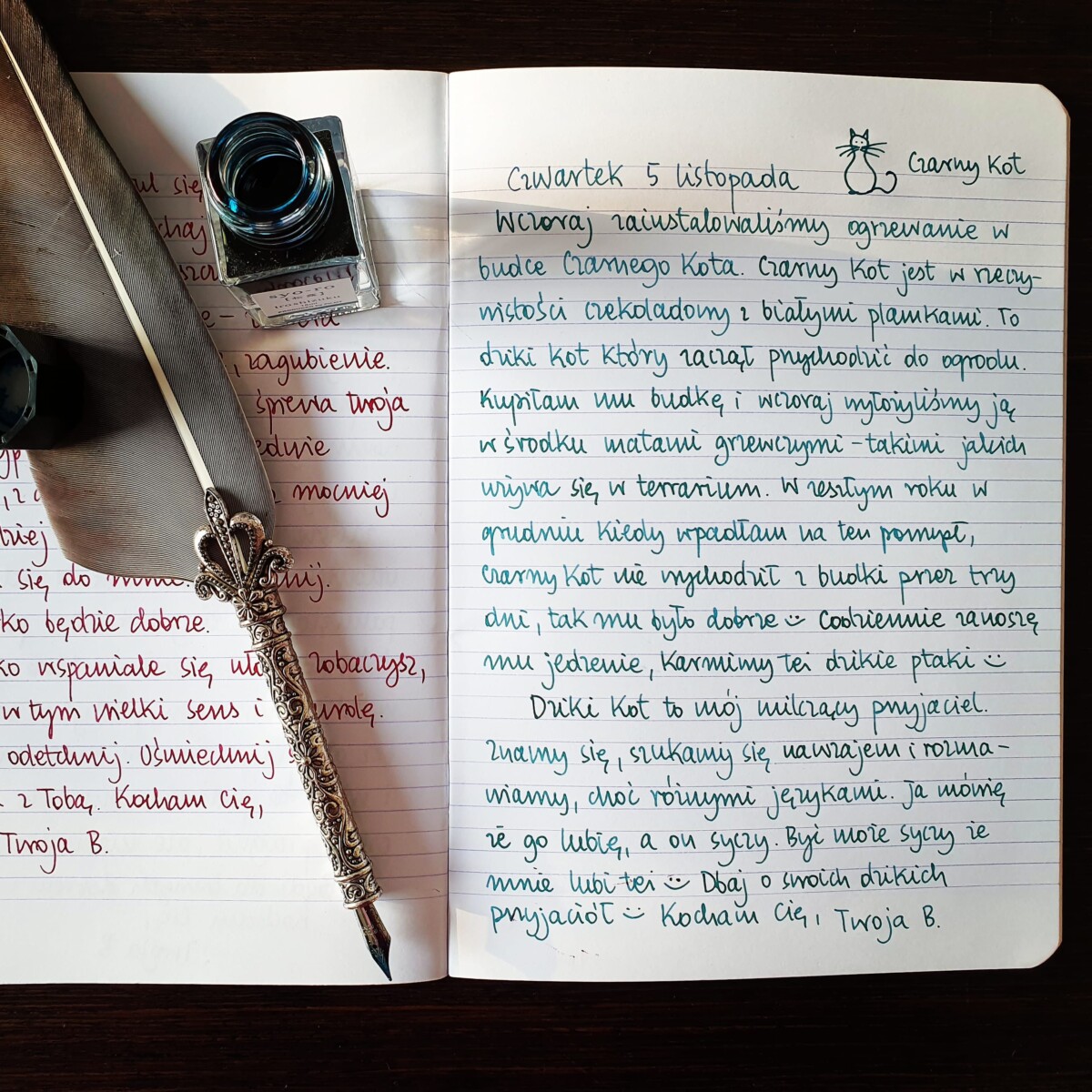 Czarny Kot to mój milczący przyjaciel. Znamy się, szukamy się nawzajem i rozmawiamy, choć różnymi językami. Ja mówię, że go lubię, a on syczy. Być może syczy, że mnie lubi też 😊