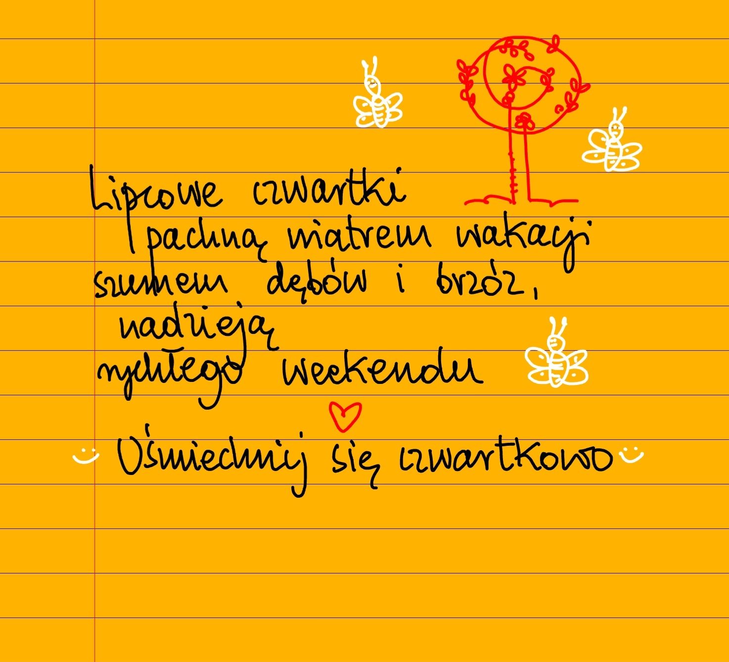 Lipcowe czwartki pachną wiatrem wakacji, szumem dębów i brzóz, nadzieją rychłego weekendu. Uśmiechnij się czwartkowo ❤ #żółtakartka #beatapawlikowska