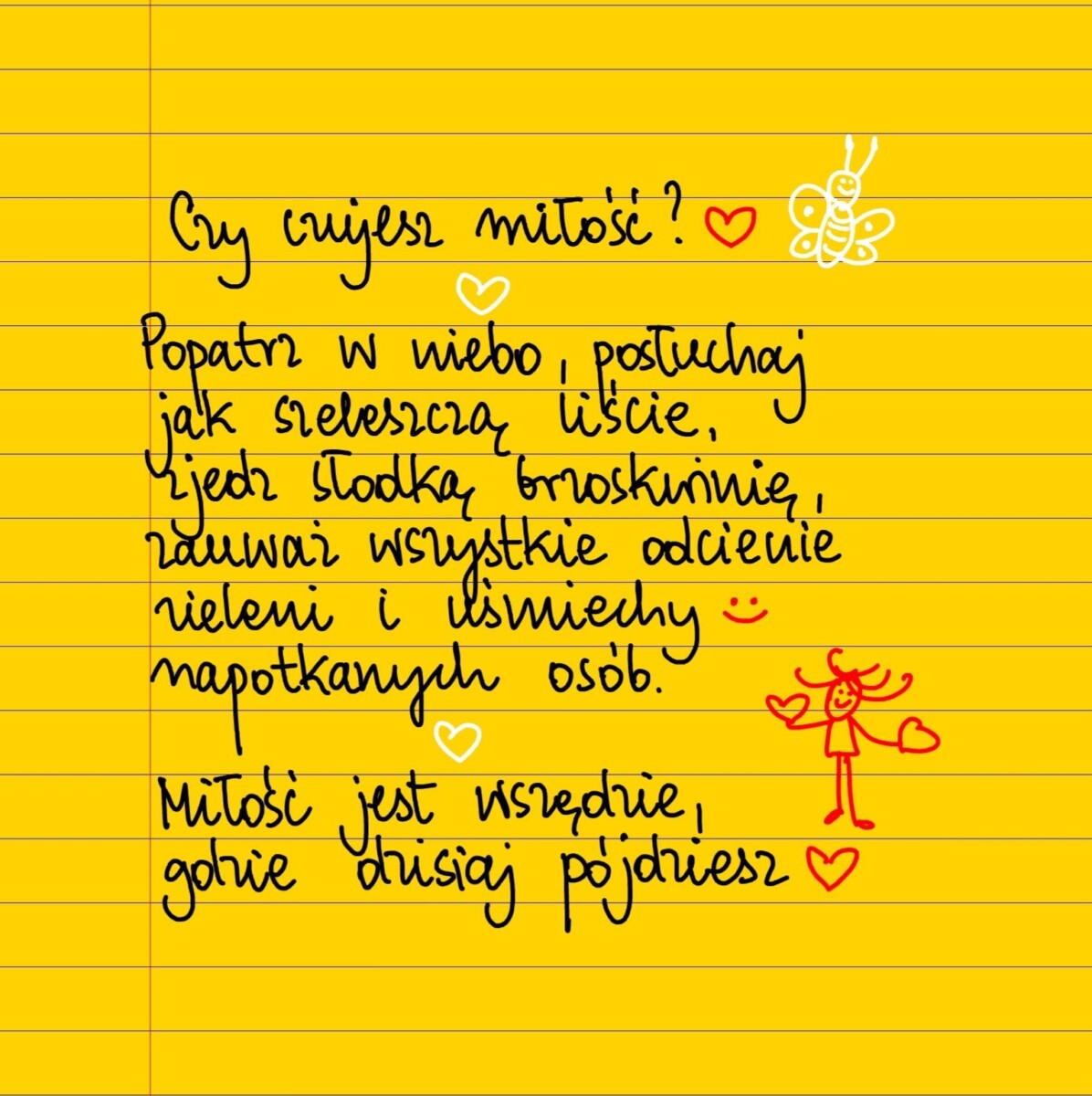 Czy czujesz miłość? Popatrz w niebo, posłuchaj jak szeleszczą liście, zjedz słodką brzoskwinię, zauważ wszystkie odcienie zieleni i uśmiechy napotkanych osób. Miłość jest wszędzie, gdzie dzisiaj pójdziesz ❤❤ #żółtakartka