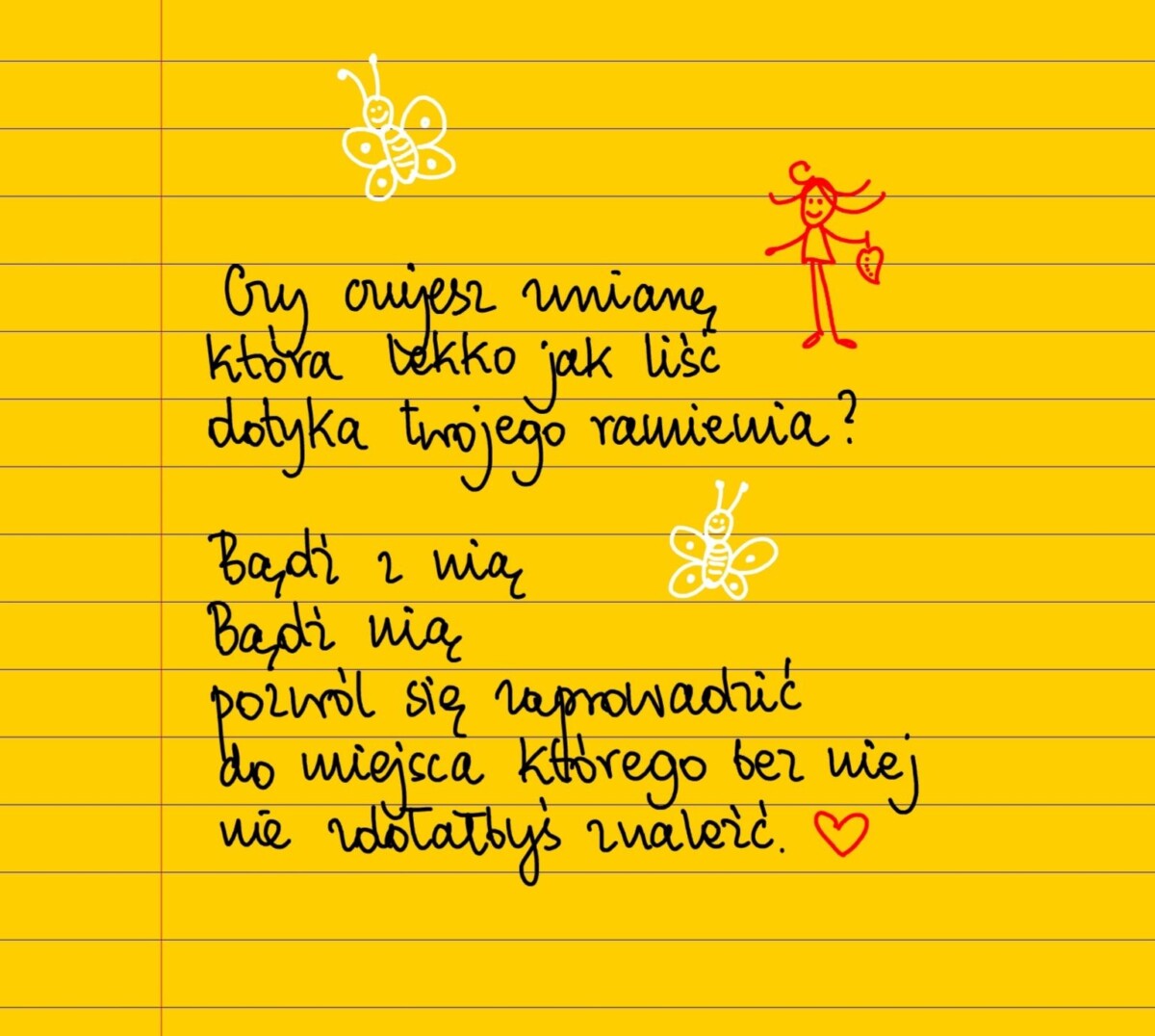 Czy czujesz zmianę, która lekko jak liść dotyka twojego ramienia? Bądź z nią. Bądź nią. Pozwól się zaprowadzić do miejsca, którego bez niej nie zdołałbyś znaleźć. #żółtakartka