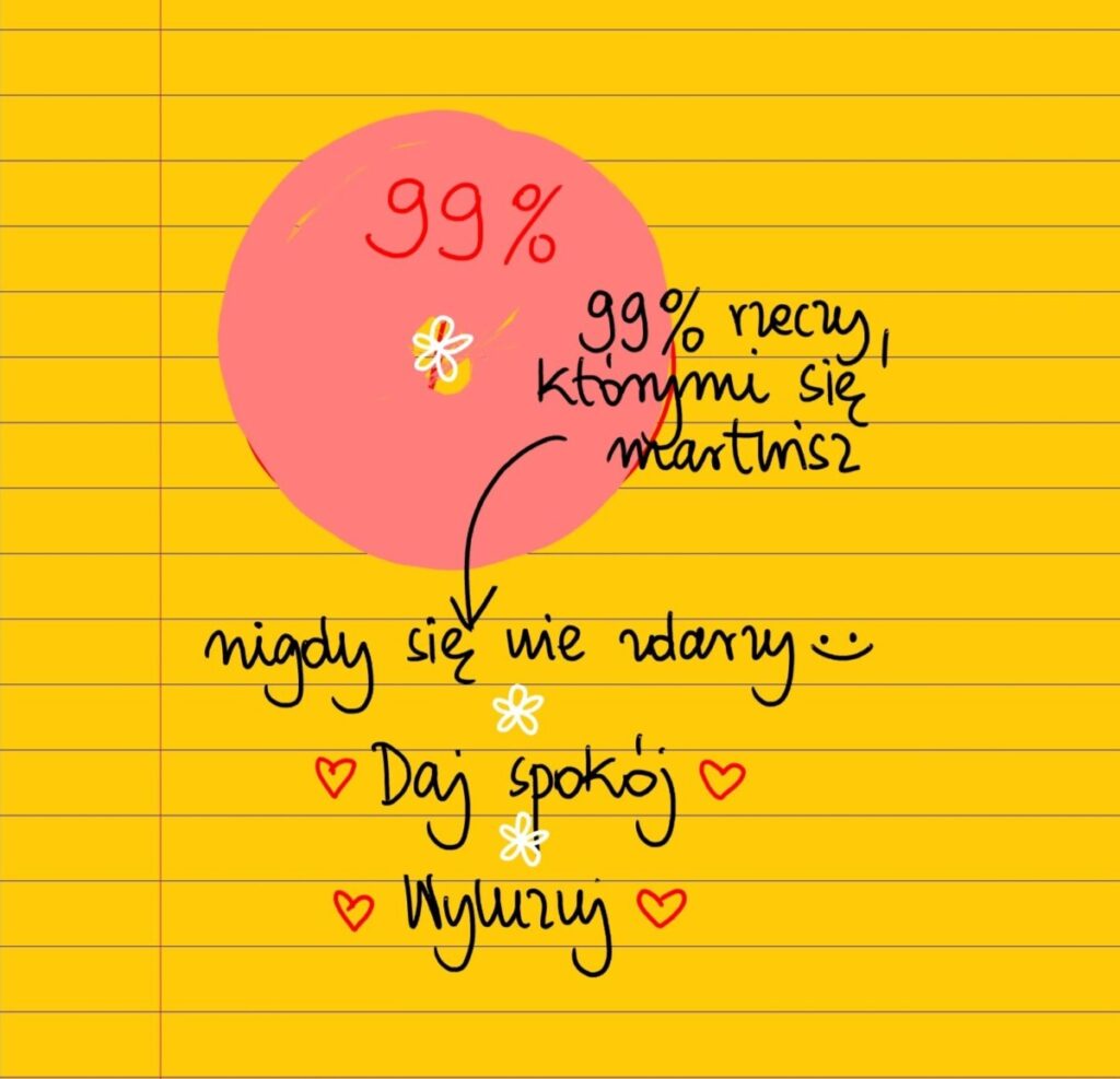 99% rzeczy, którymi się martwisz, nigdy się nie zdarzy 🙂 Daj spokój 🙂 Wyluzuj 🙂 #żółtakartka