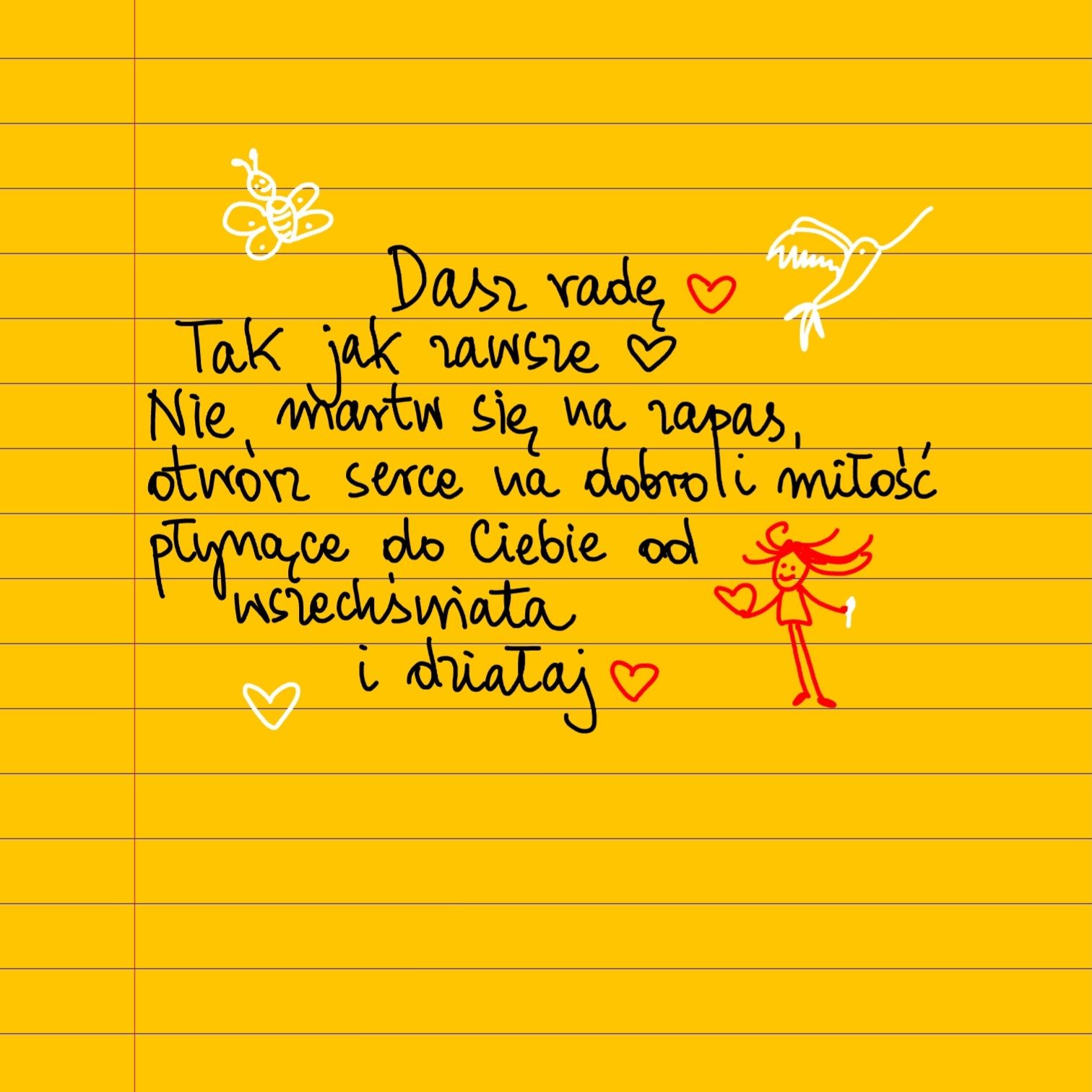 Dasz radę. Tak jak zawsze. Nie martw się na zapas, otwórz serce na dobro i miłość płynące do ciebie od wszechświata i działaj. Życzę Ci cudownego tygodnia! ❤