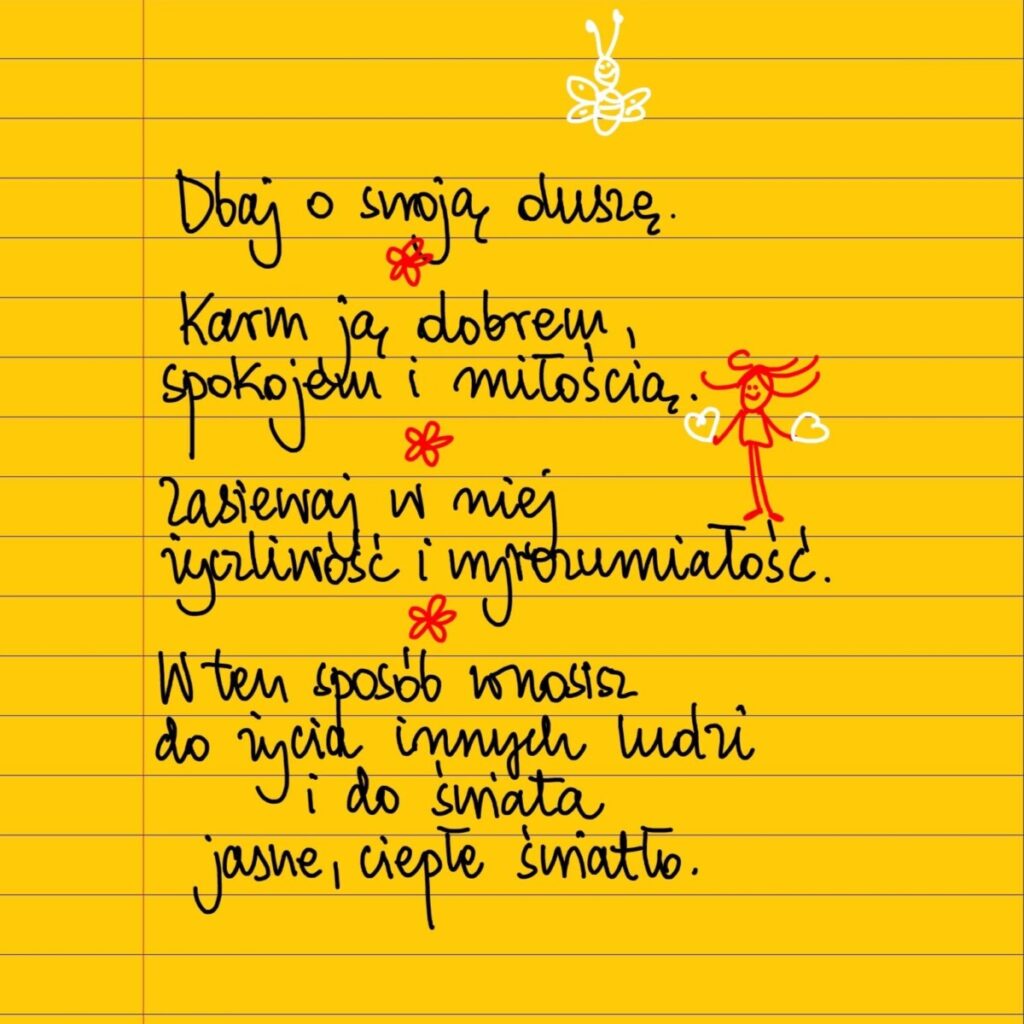 Dbaj o swoją duszę. Karm ją dobrem i miłością. Zasiewaj w niej zyczliwość i wyrozumiałość. W ten sposób wnosisz do życia innych ludzi i do świata jasne, ciepłe światło. #żółtakartka