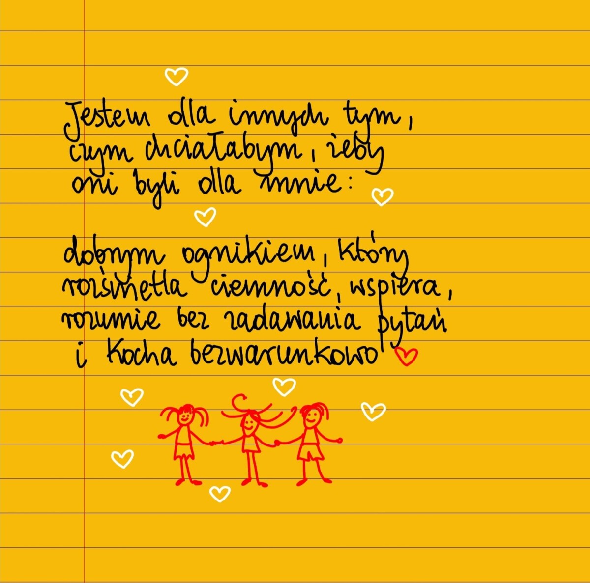 Jestem dla innych tym, czym chciałabym, żeby oni byli dla mnie: dobrym ognikiem, który rozświetla ciemność, wspiera, rozumie bez zadawania pytań i kocha bezwarunkowo.