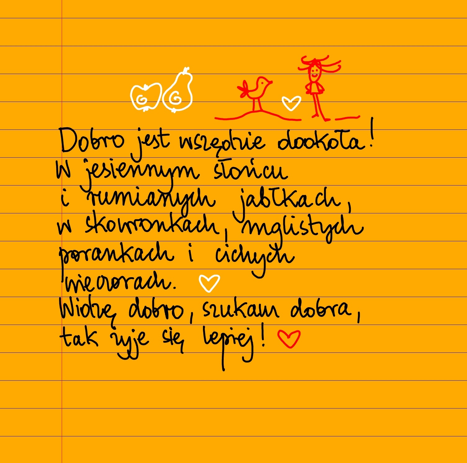 Dobro jest wszędzie dookoła! W jesiennym słońcu i rumianych jabłkach, w sikorkach i wronach, w zamglonych porankach i cichych wieczorach. Widzę dobro, szukam dobra i jestem za to wdzięczna. Tak żyje się lepiej!❤ #dobro #szukamdobra #widzędobro #jestemwdzięczna #żyjęlepiej #żółtakartka #beatapawlikowska