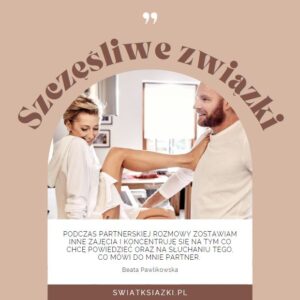 Istnieją jednak związki, w których panuje prawdziwe porozumienie i dobra, życzliwa wzajemna relacja. I znów, nie chodzi o to, że małżonkowie nigdy się nie kłócą, bo jego nigdy nie ma w domu, bo pracuje dwanaście godzin na dobę, wraca późno i nie ma ochoty na dyskusje. W takim związku rośnie tylko samotność, a nie miłość.
