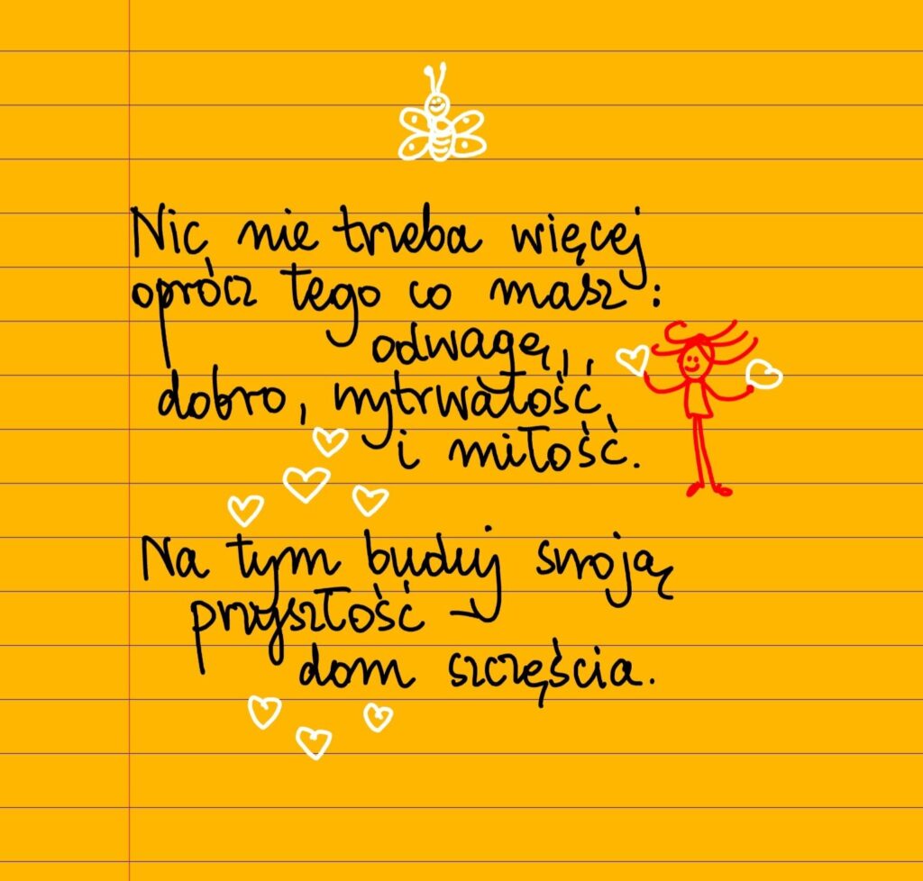 Nic nie trzeba więcej oprócz tego co masz. Nic więcej poza twoją odwagę, wytrwałość, dobro i miłość. Na tym buduj swoją przyszłość, a zobaczysz, że powstanie dom szczęścia. #żółtakartka