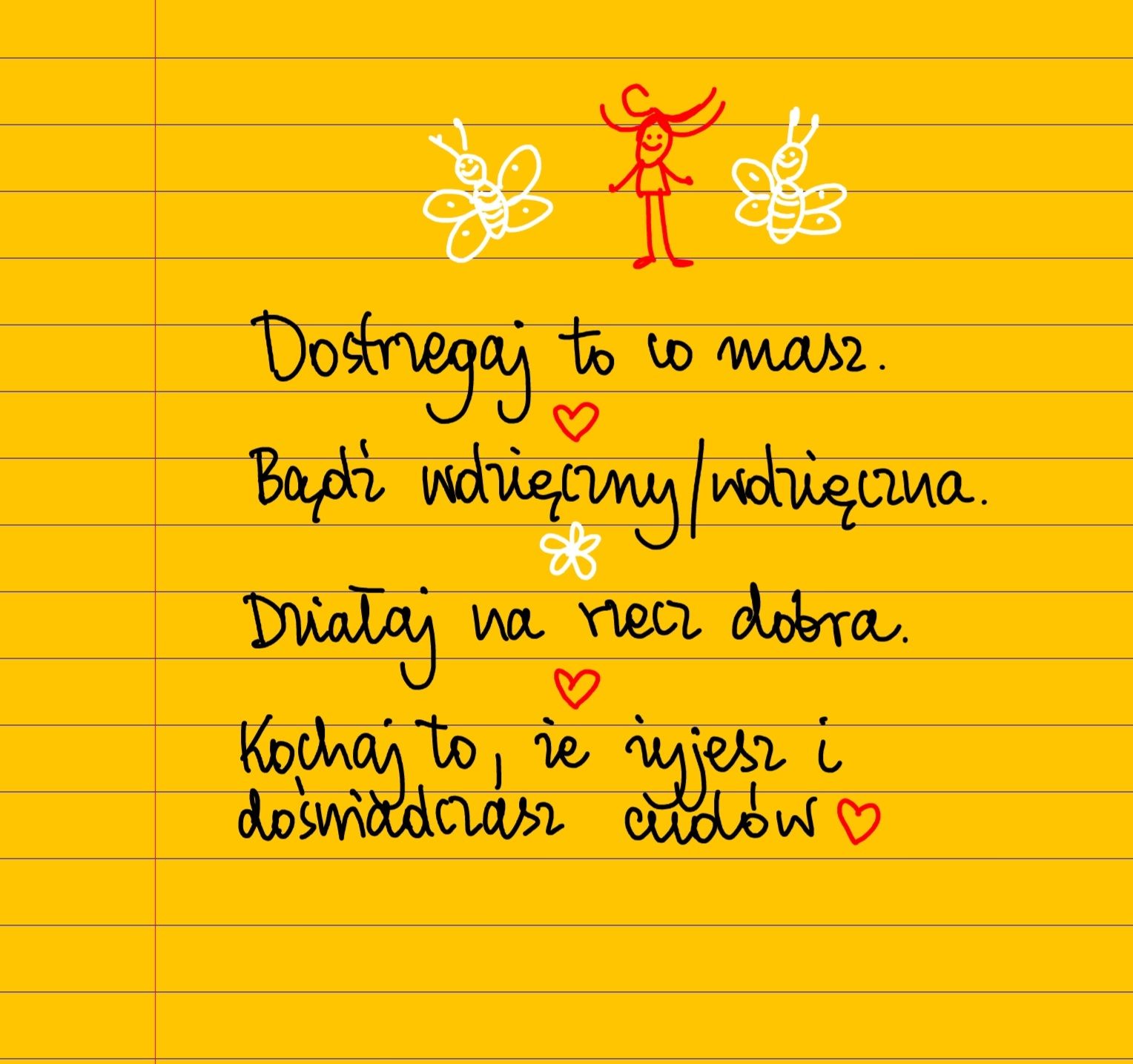 Dostrzegaj to co masz. Bądź wdzięczny/wdzięczna. Działaj na rzecz dobra. Kochaj to, że żyjesz i doświadczasz cudów ❤ żółtakartka