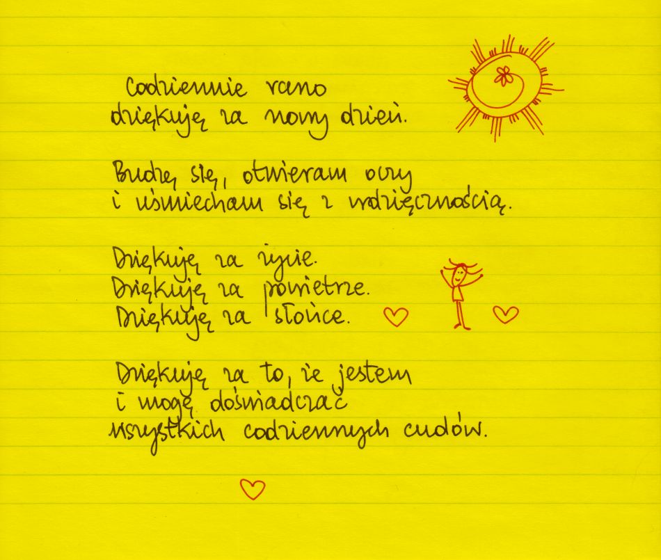 Codziennie rano dziękuję za nowy dzień. Budze się, otwieram oczy i uśmiecham się z wdzięcznością. Dziękuję za życie. Dziękuję za powietrze. Dziękuje za slońce. Dziękuję za to, że jestem i mogę doświadczać wszystkich codziennych cudów. #żółtakartka