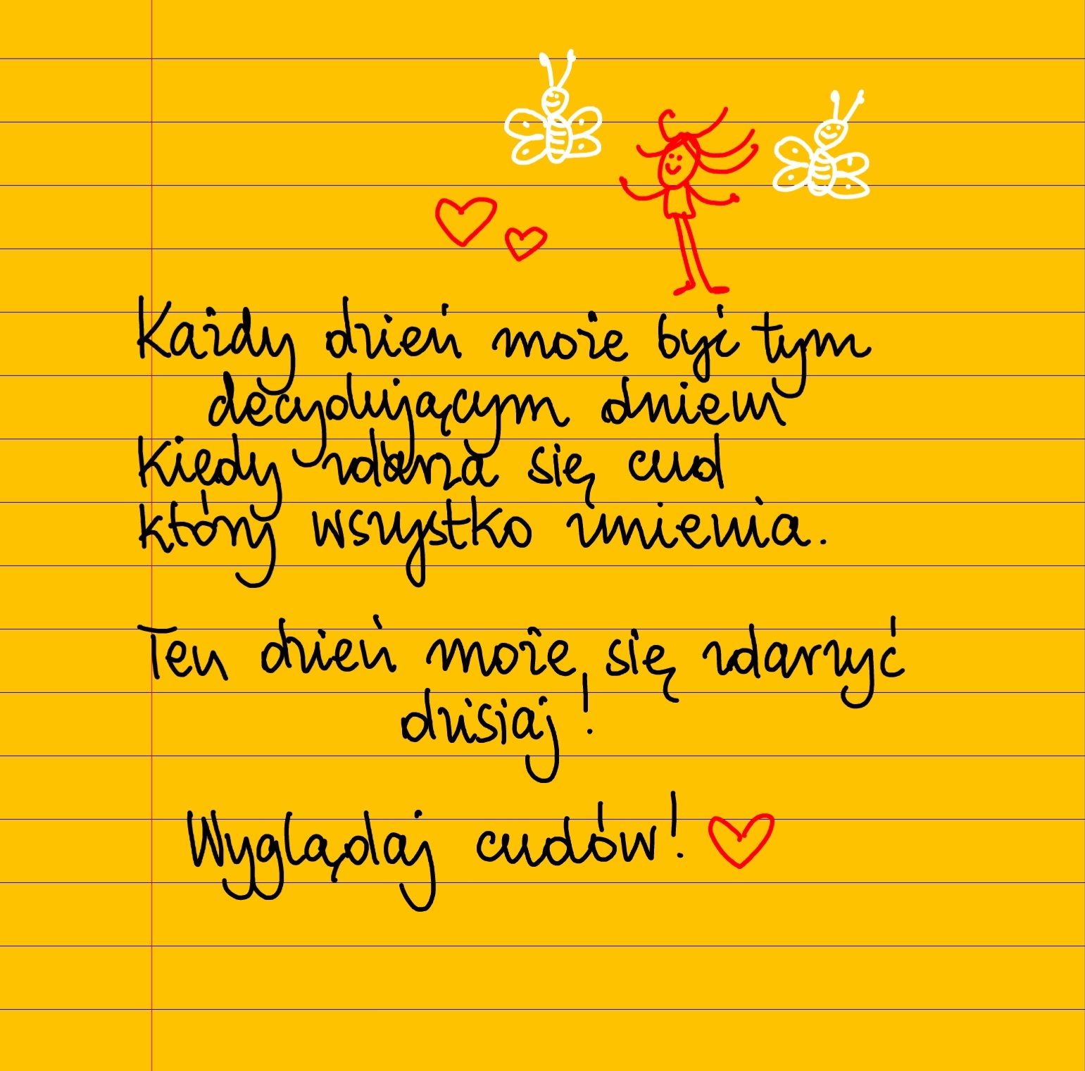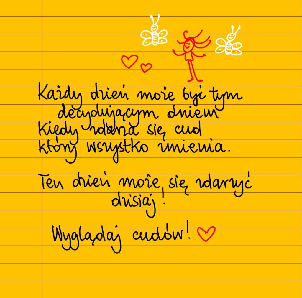 Każdy dzień może być tym decydującym dniem, kiedy zdarza się cud nadający wszystkiemu zupełnie nowe światło. Ten dzień może zdarzyć się dzisiaj. Wyglądaj cudów! #żółtakartka