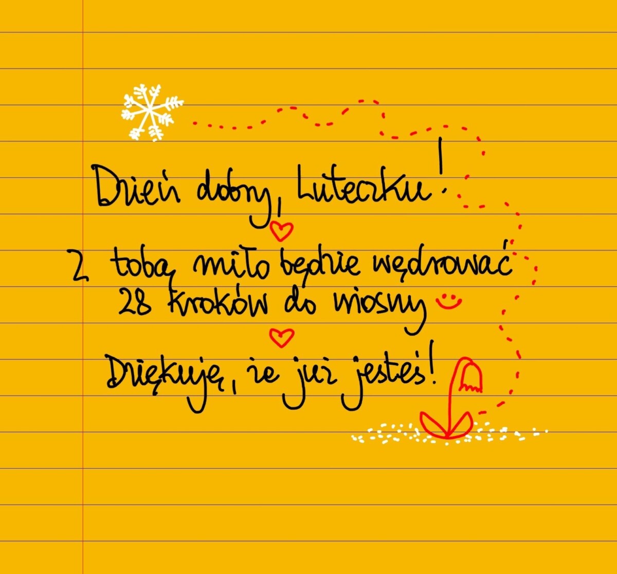 Dzień dobry, Luteczku! Z tobą miło będzie wędrować dwadzieścia osiem kroków do wiosny 😊 Dziękuję, że już z nami jesteś 😊 #żółtakartka