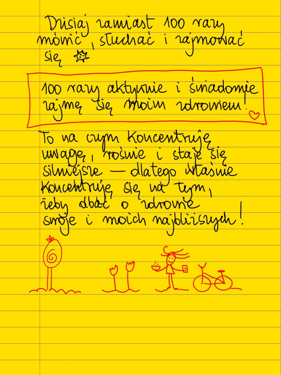 Dzisiaj 100 razy aktywnie i świadomie zajmę się moim zdrowiem. Oto mój plan: