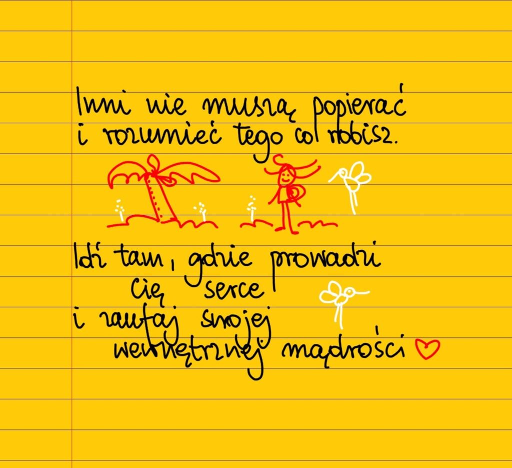 Inni nie muszą popierać i rozumieć tego co robisz. Idź tam, gdzie prowadzi Cię serce i zaufaj swojej wewnętrznej mądrości ❤ #żółtakartka