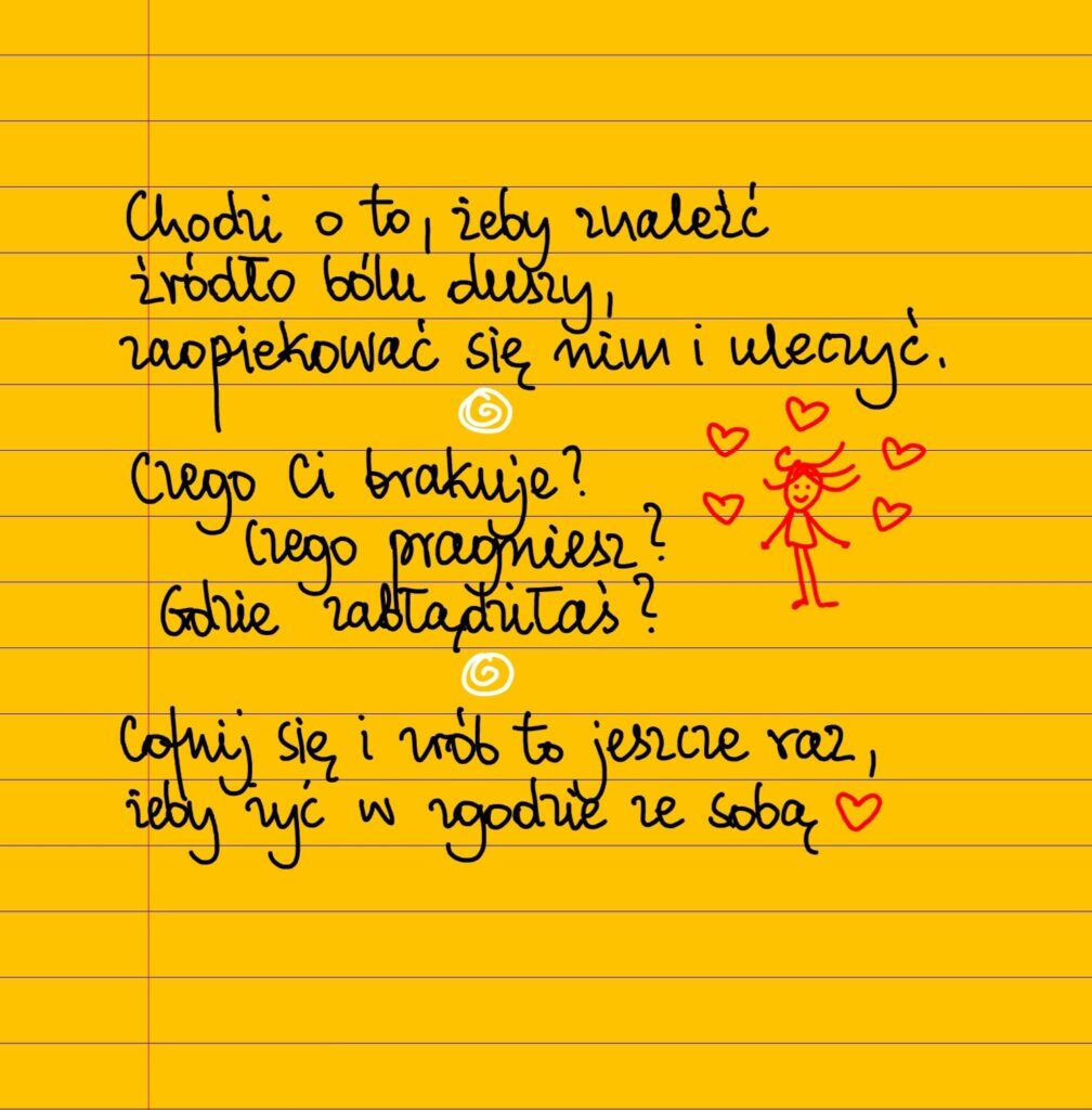 W życiu nie chodzi o to, żeby przestało boleć. Chodzi o to, żeby znaleźć źródło tego bólu, zaopiekować się nim i uleczyć. Jeśli boli cię dusza, czego ci brakuje? Czego potrzebujesz? Czego pragniesz? Gdzie zabłądziłaś? Cofnij się i zrób to jeszcze raz, tak, żeby żyć w zgodzie ze sobą ❤