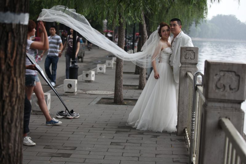 Narzeczeni przyjeżdżają do Szanghaju, że zrobić sobie zdjęcia ślubne także przed ślubem, Chiny