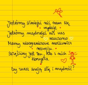 Jakość życia zależy bezpośrednio od tego, jakie ma się nastawienie do siebie, do innych i do świata. Człowiek nauczony przekonania, że jest gorszy, niepotrzebny i przeszkadza innym będzie podchodził do rzeczywistości z lękiem, spodziewając się kolejnego odrzucenia albo ten lęk będzie ukrywał pod przesadną agresją, usiłując wywalczyć sobie miejsce wśród ludzi. Nastawienie do samego siebie przekłada się na relacje ze światem. Dlatego dbanie o siebie jest fundamentalnie ważne. Trzeba się sobą zaopiekować i wychować na nowo, dać sobie wsparcie, przyjaźń i poczucie bezpieczeństwa, dlatego że dzięki temu stajemy się ludźmi zdolnymi do życzliwego, partnerskiego podejścia zarówno do siebie, jak i do innych. To jest zajęcie na całe życie. Ja codziennie pytam siebie czego potrzebuję, jak się czuję i świadomie staram się kierować moim życiem w taki sposób, żeby stawać się lepszym, mądrzejszym człowiekiem.
