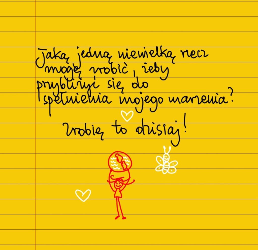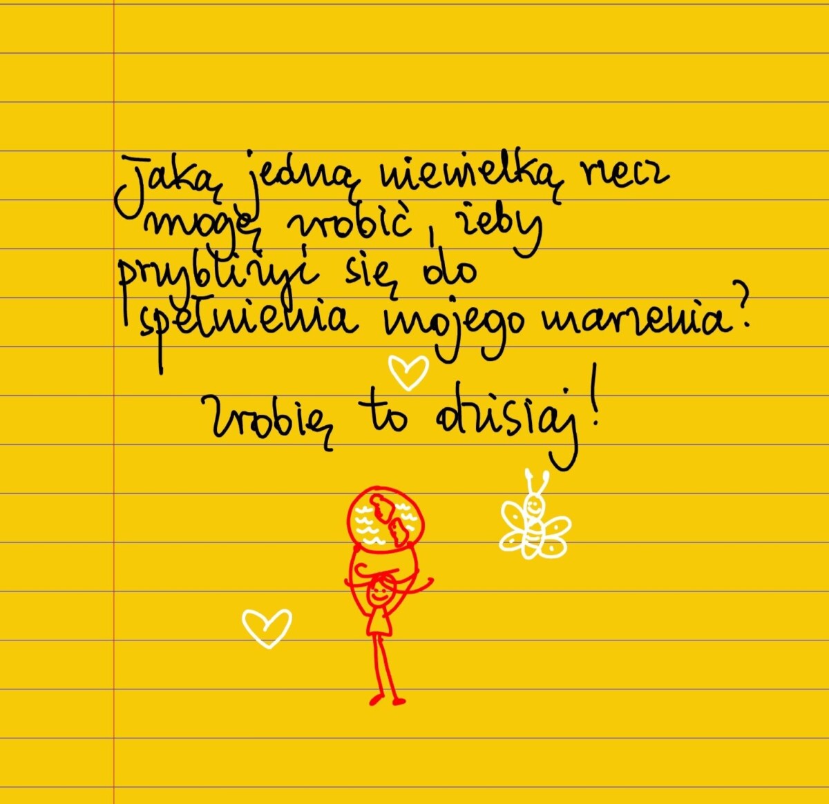 Jaką jedną niewielką rzecz mogę zrobić dzisiaj, żeby przybliżyć się do spełnienia mojego marzenia? Zrobię to dzisiaj! #żółtakartka