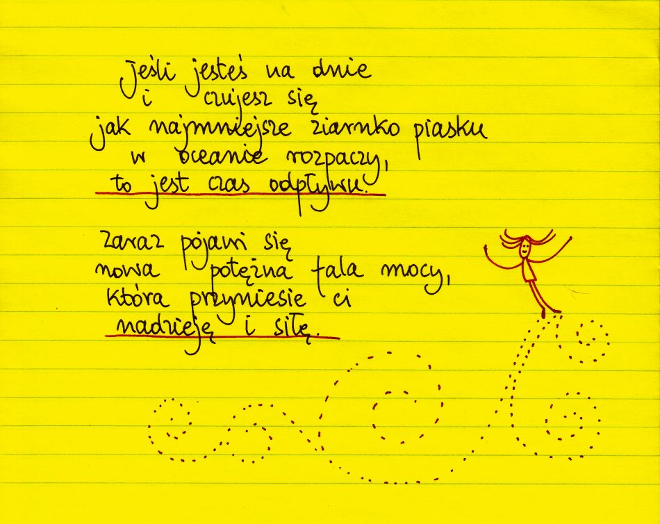 Jeśli jesteś na dnie i czujesz suię jak najmniejsze ziarnko piasku w oceanie rozpaczy, to jest czas odpływu. Zaraz pojawi się nowa potężna fala mocy, która przyniesie ci nadzieję i siłę ❤