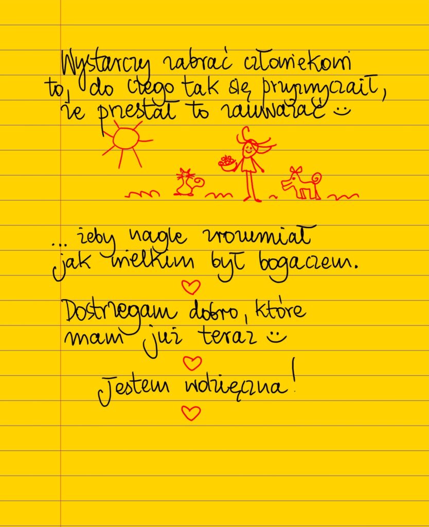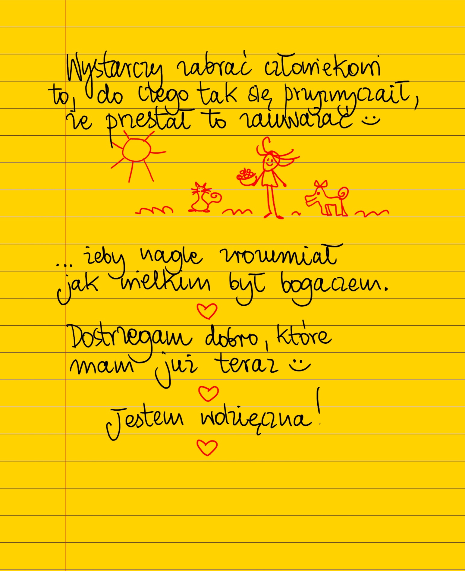 Wystarczy zabrać człowiekowi to, do czego tak się przyzwyczaił, że przestał to zauważać, żeby nagle zrozumiał jak wielkim był bogaczem. Dostrzegam dobro, które mam już teraz ❤ Jestem wdzięczna ❤ #żółtakartka