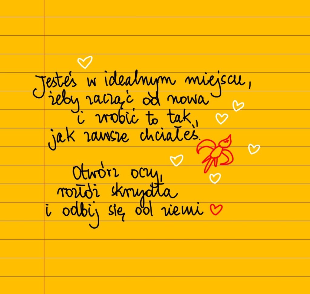 Jesteś w idealnym miejscu, żeby zacząć od nowa i zrobić to tak, jak zawsze chciałeś. Otwórz oczy, rozłóż skrzydła i odbij się od ziemi ❤ #żółtakartka
