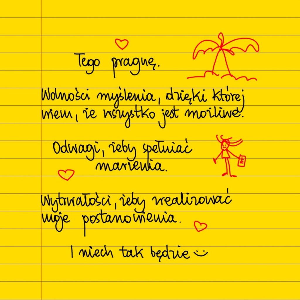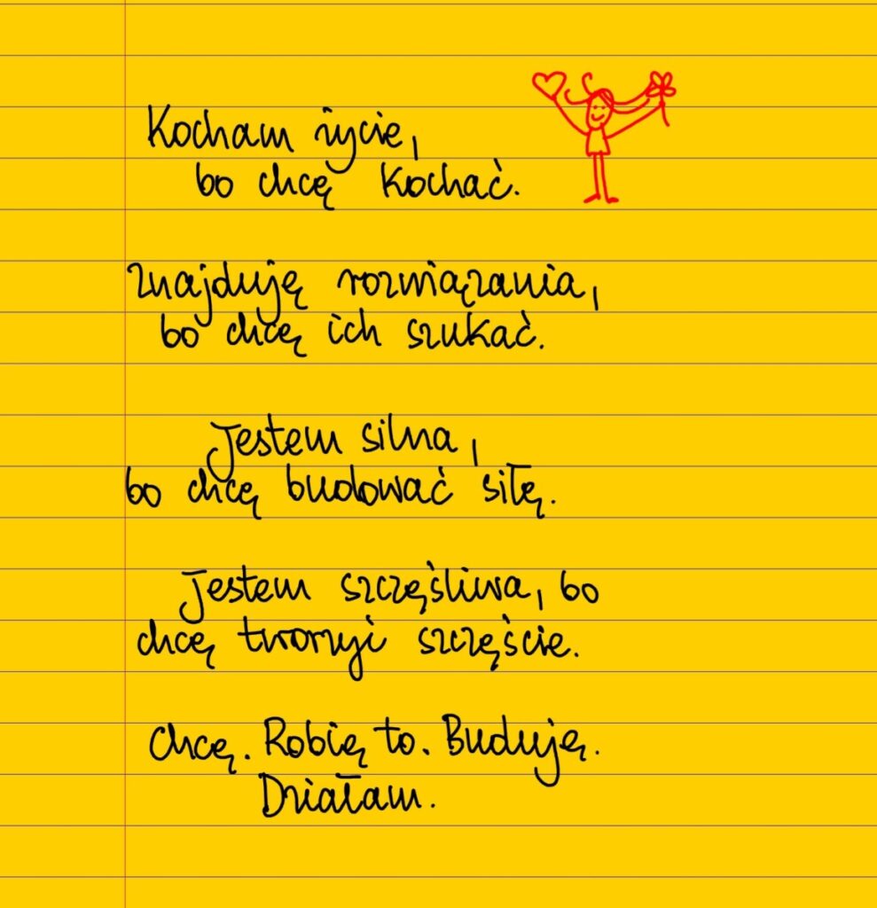 Kocham życie, bo chcę kochać. Znajduję rozwiązania, bo chcę ich szukać. Jestem silna, bo chcę budować siłę. Jestem szczęśliwa, bo chcę tworzyć szczęście. Chcę. Robię to. Buduję. Działam. #żółtakartka