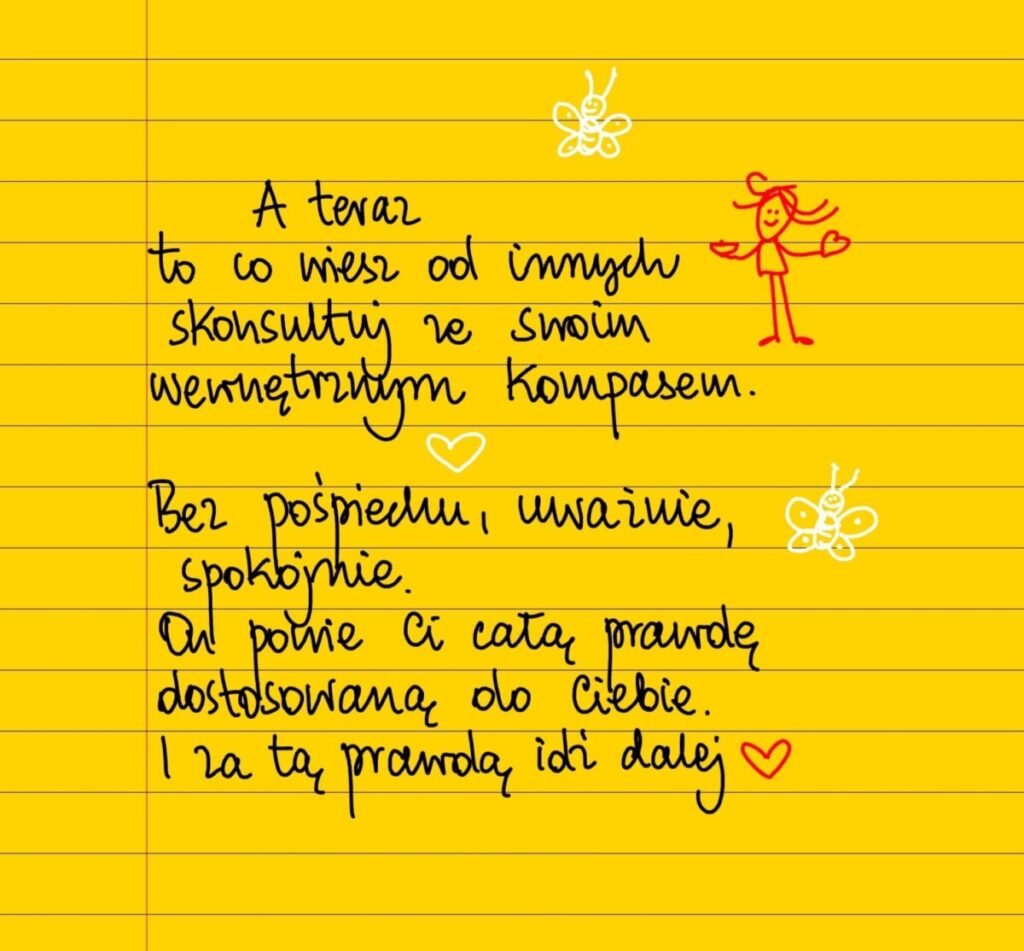 A teraz to co wiesz od innych skonsultuj ze swoim wewnętrznym kompasem. Bez pośpiechu, uwaznie, spokojnie. On powie Ci całą prawdę dostosowaną do Ciebie. I za tą prawdą idź dalej. #żółtakartka