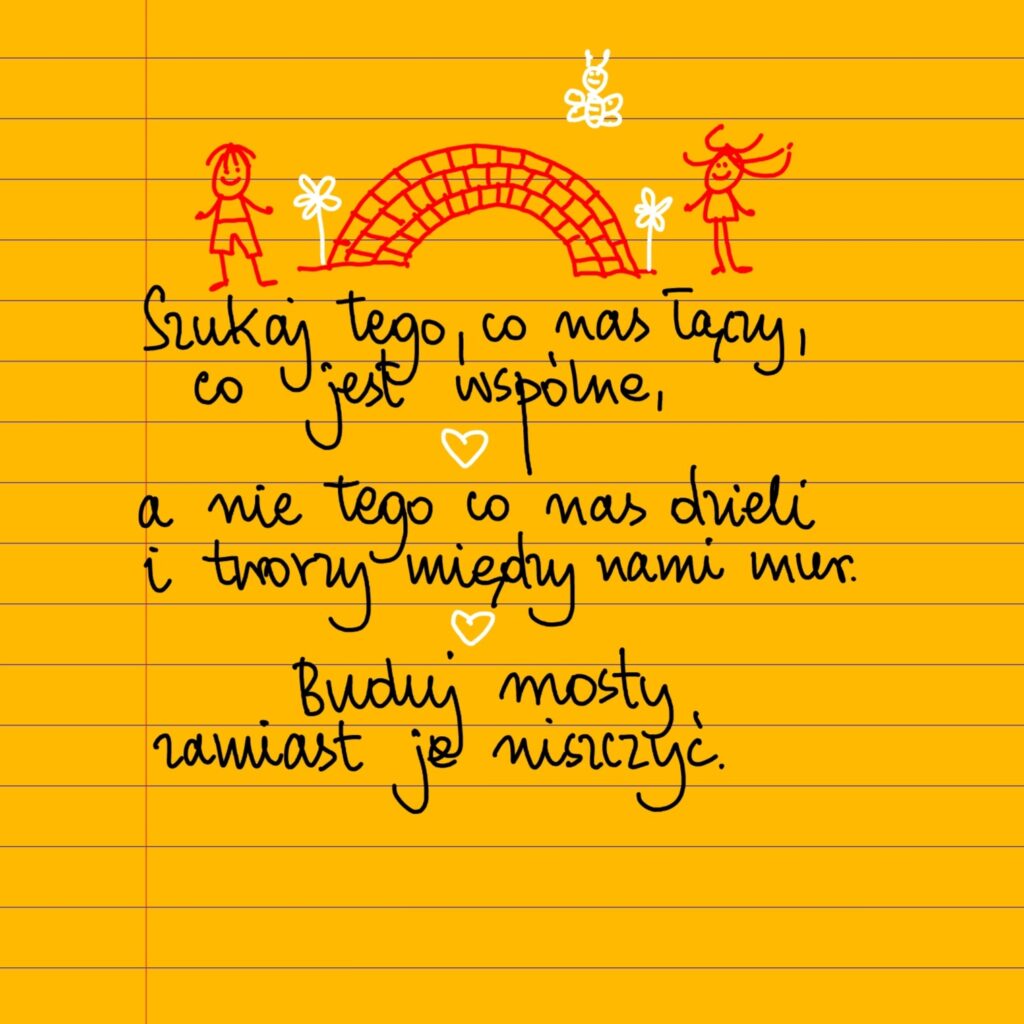Szukaj tego co wspólne, co nas łączy, a nie tego, co nas dzieli i tworzy między nami mur. Buduj mosty zamiast je niszczyć ❤ #żółtakartka