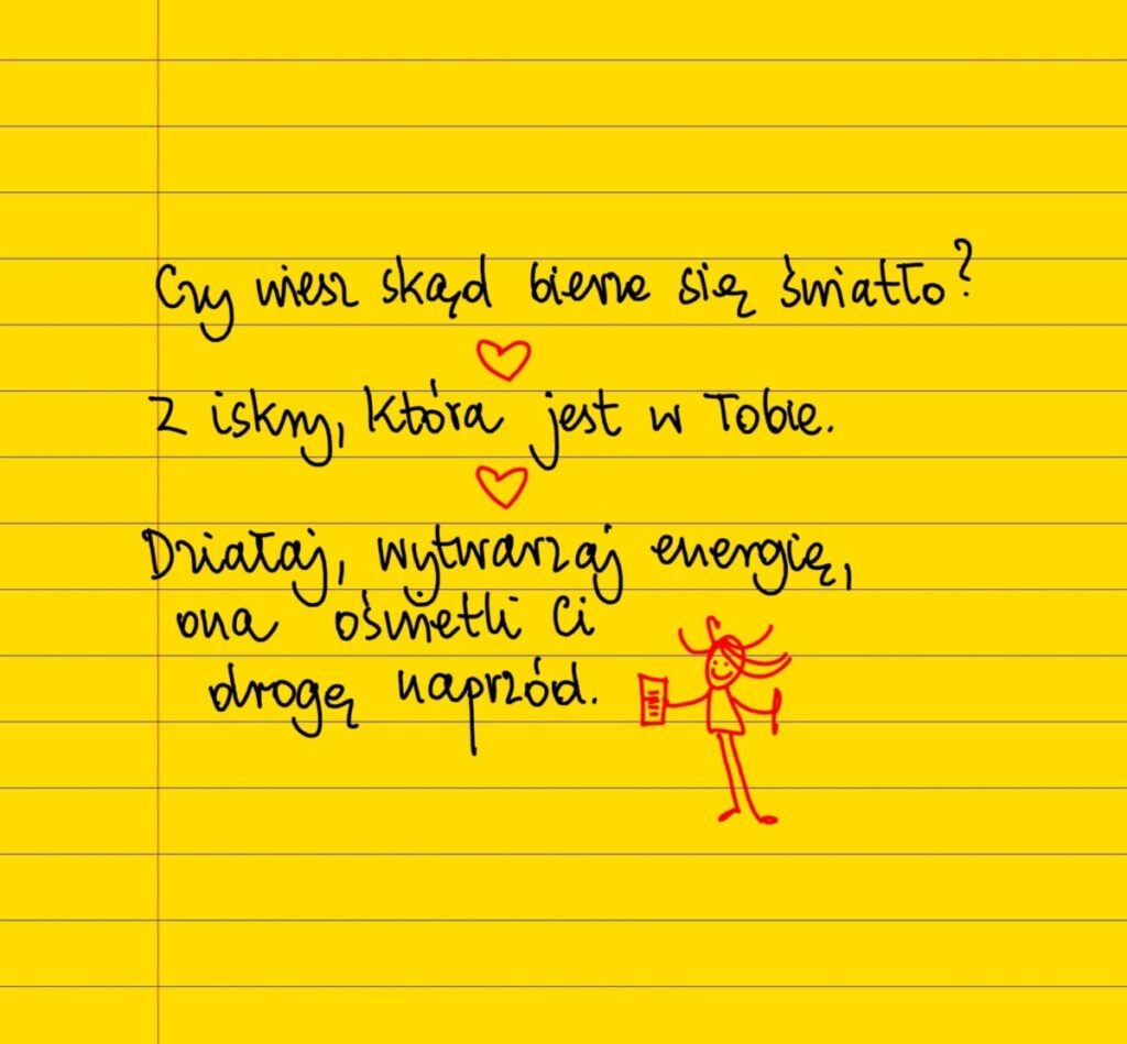 Czy wiesz skąd bierze się światło? Z iskry, która w tobie jest. Działaj, wytwarzaj energię, ona oświetli ci drogę naprzód. #żółtakartka