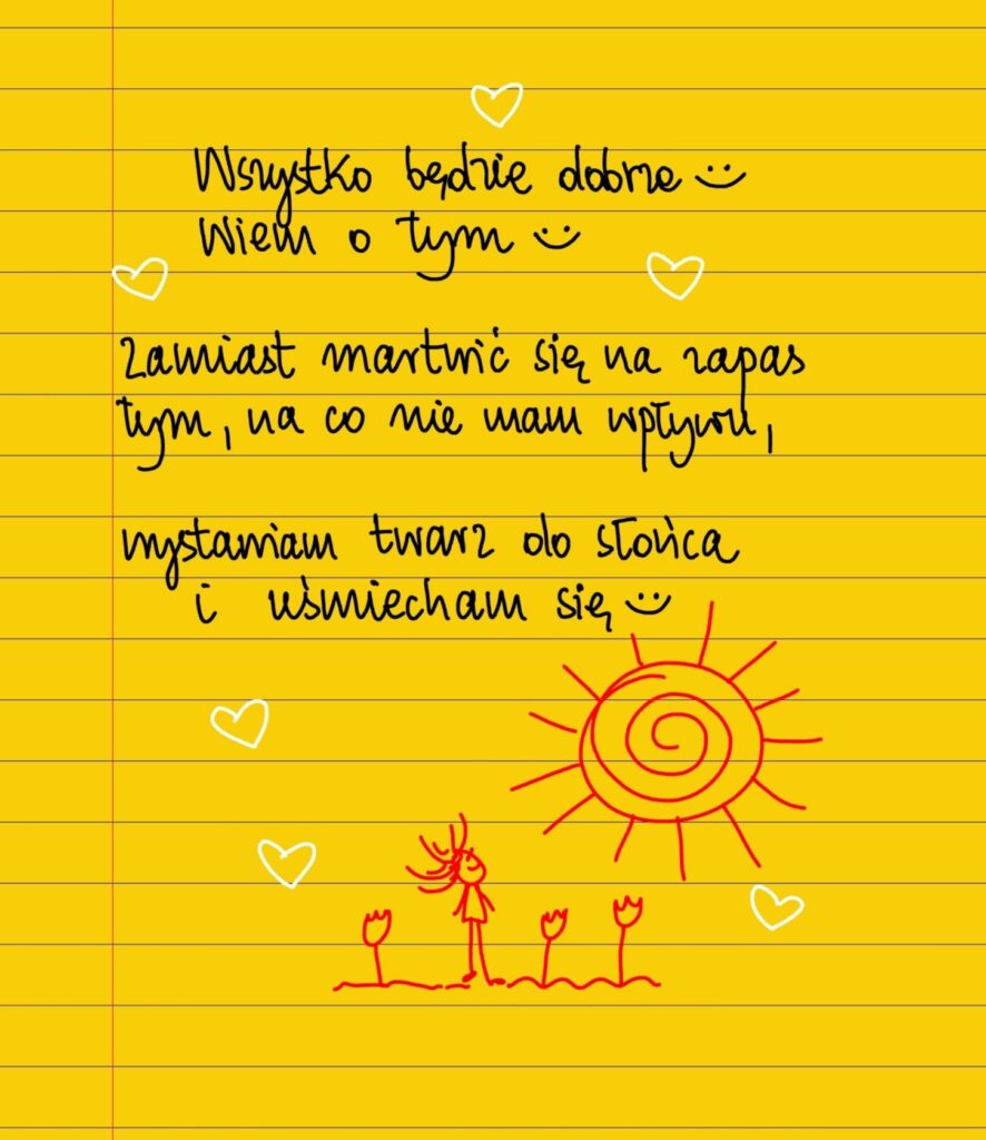 Wszystko będzie dobrze ❤ Wiem o tym ❤ Zamiast martwić się na zapas tym, na co nie mam wpływu, wystawiam twarz do słońca i uśmiecham się ❤ #żółtakartka #beatapawlikowska