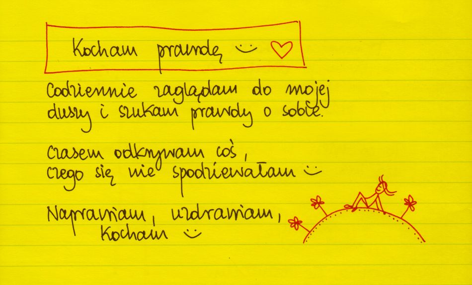 Kocham prawdę 🙂 Codziennie zaglądam do swojej duszy i szukam prawdy o sobie. Czasem odkrywam coś, czego się nie spodziewałam 🙂 Naprawiam, uzdrawiam, kocham 🙂 #żółtakartka