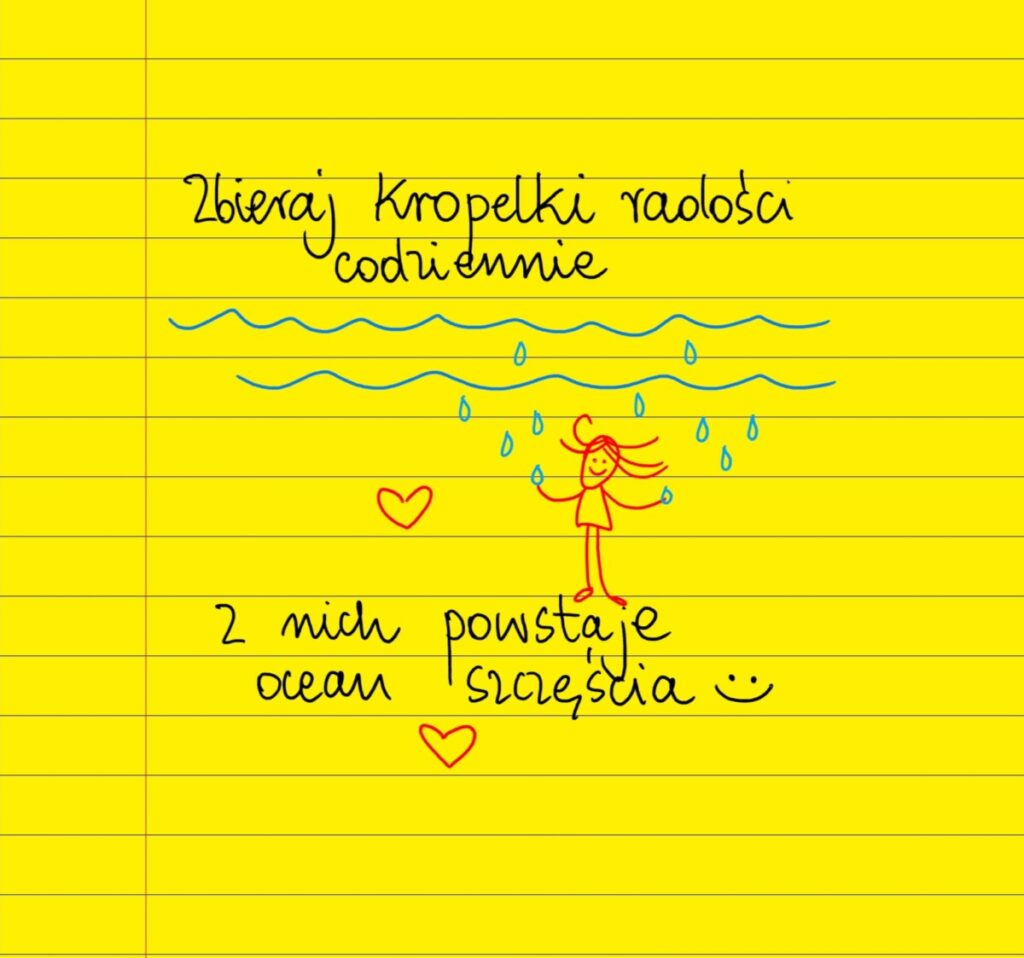Zbieraj kropelki radości codziennie. Z nich powstaje ocean szczęścia 🙂 #żółrakartka