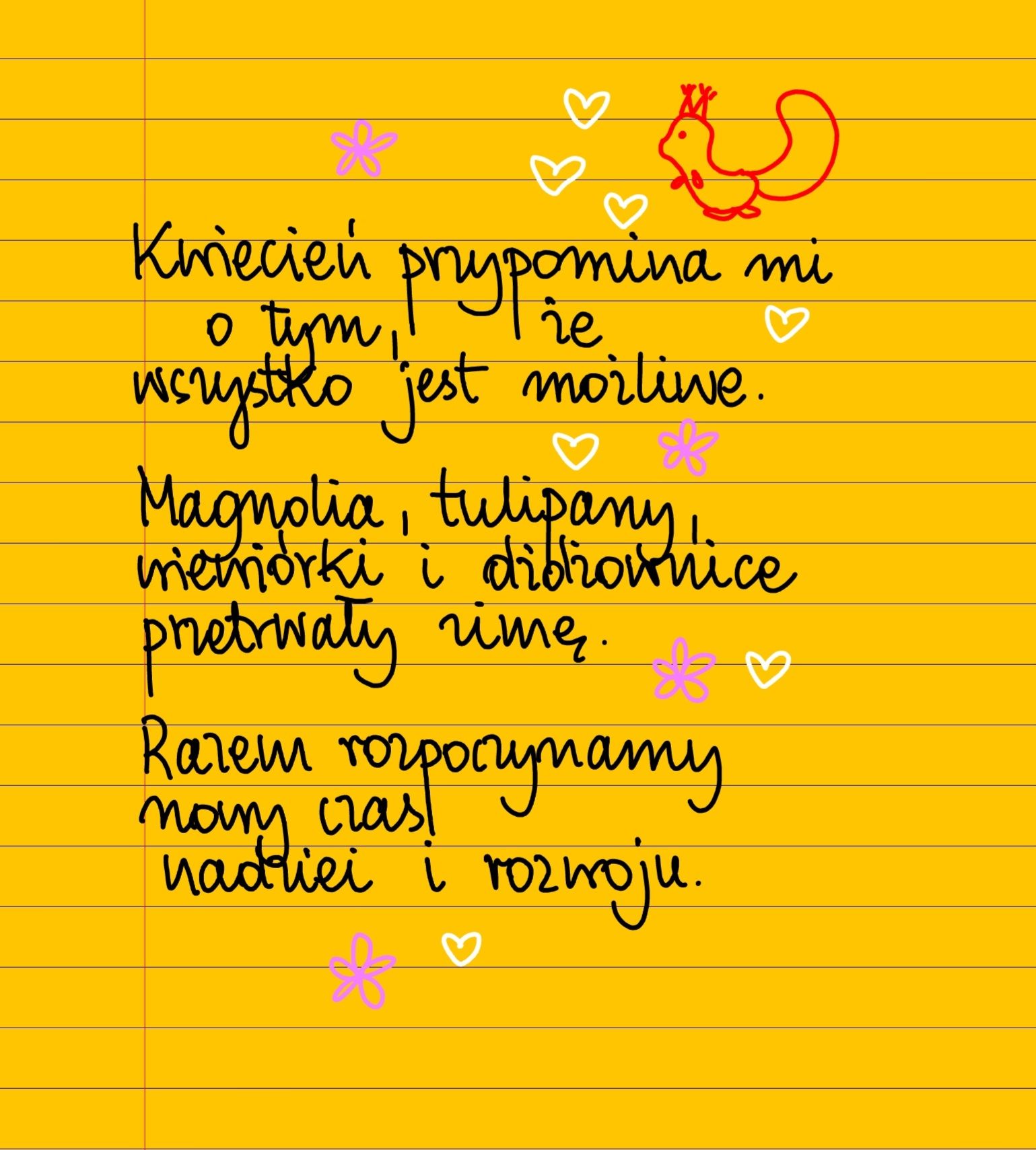 Kwiecień przypomina mi zawsze o tym, że wszystko jest możliwe. Magnolia, tulipany, wiewiórki i dżdżownice przetrwały zimę. Wszyscy rozpoczynamy nowy czas nadziei i rozwoju. #żółtakartka