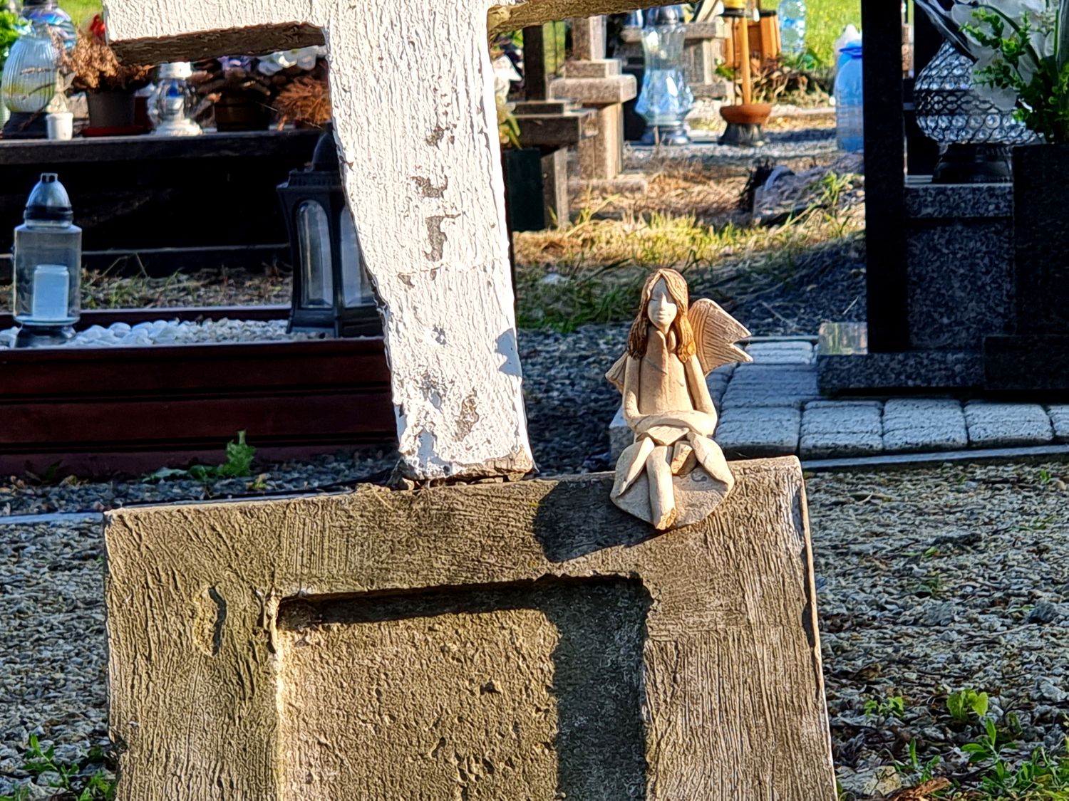 Tak spokojnie, miękko lśniło słońce w oddali gdy pchnęłam metalową furtkę. Przy ulicach, gdzie ciągle trwa ruch i ludzie nieustannie przemieszczają się naprzód, cmentarze pozostają zieloną oazą ciszy, zadumy i wieczności. Szłam przed siebie bez pośpiechu, ale z dziwną pewnością, tak jakbym wiedziała co się kryje w tamtej części cmentarza. I nagle nagrobki zrobiły się małe, niektóre wyglądały jak dziecinne łóżeczka. Gabryś, Ania, Julka, Karolek, Jaś, Agniesia… Niektóre dzieci przeżyły jeden dzień, inne kilka miesięcy albo kilka lat. Stopy przyprowadziły mnie na ten cmentarz u stóp prasłowiańskiej góry Ślęży do maleńkich grobów dzieci z figurkami aniołów. To nie przypadek, wczoraj był Dzień Matki. Wszyscy jesteśmy razem. Tutaj i tam. Po tej stronie i po drugiej stronie światła. Cmentarze są zwykle pełne życia. Kwitną kwiaty, śpiewają ptaki, pną się rośliny. Cmentarze przypominają o tym, że mamy życie. Tu wspaniały cud, dar i szansa. Bądź jak majowy kos, który zawsze śpiewa.
